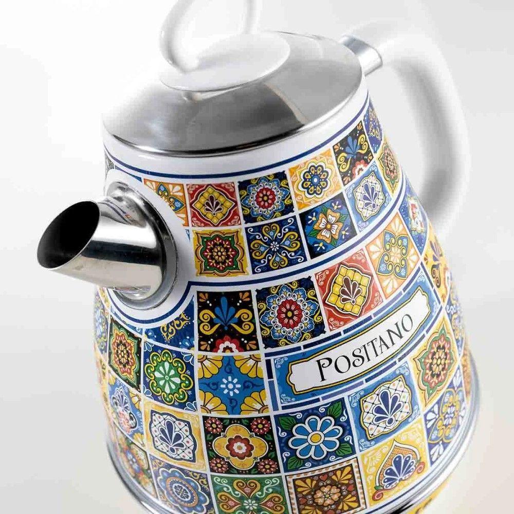 Chaleira Elétrica Ariete Positano 1,7L 1500W Modelo 2869 Design Italiano 220VChaleira Elétrica 2869 Positano 1,7 L 220V ArieteA Chaleira Elétrica Positano Ariete une design refinado e funcionalidade moderna em uma peça inspirada no charme vibrante do Mediterrâneo.Suas linhas sinuosas e elegantes evocam o estilo único de Positano, transformando a cozinha em um verdadeiro oásis de beleza. Com base sem fio e capacidade de 1,7 L, ela é prática, eficiente e ideal para quem ama chá, infusões e outras bebidas quentes.Um toque de sofisticação e aconchego para deixar seus momentos de pausa ainda mais especiais.Chaleira Elétrica 2869 Positano 1,7 L 220V Ariete - InformaçõesCapacidade de 1,7 litrosDesligamento AutomáticoConstruída em Aço inoxidávelBase 360º1850W de potênciaChaleira Elétrica 2869 Positano 1,7 L 220V Ariete - Especificações TécnicasModelo: 2869Cor: ColoridoPotência: 1850WVoltagem: 220VCapacidade: 1,7 litrosBase com giro de 360°: SimIndicador visível do nível de água: SimSegurança de paredes frias e base de apoio: SimFiltro removível para chá de ervas: SimDesligamento automático: SimDimensões (C x A x L): 21 x 25 x 20 cmPeso do produto: 1,2 kg