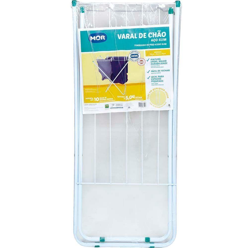 Varal De Chão Slim Branco MorVaral de Chao Slim MorO Varal de Chão Slim da Mor é a maneira mais barata e ecológica para secar suas roupas. Prático e funcional é perfeito para quem não tem muito espaço em casa ou apartamentos. Pode ser carregado facilmente para onde você preferir e quando não estiver utilizando, basta dobrá-lo e guardar em qualquer cantinho. Sua estrutura foi desenvolvida em tubo de aço com acabamento em pintura epóxi a pó branca. Possui sete varetas com capacidade para até 5,2m de roupa ou 16Kg distribuídos. Suas peças plásticas são de polipropileno, incluindo as ponteiras em seus pés que ajudam a proteger o piso. Com o Varal de Chão Slim as tarefas do dia a dia ficarão muito mais simples.