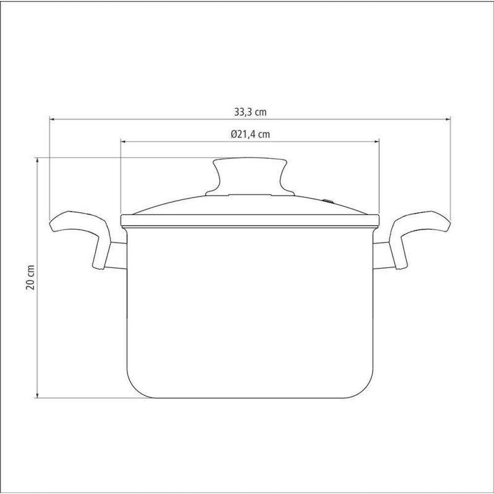 Caldeirão Paris Alum. Antiad. 20 Cm 4,2l Vermelho TramontinaCaldeirão Tramontina Paris em Alumínio com Revestimento Interno e Externo em Antiaderente Starflon Max Vermelho com Tampa de Vidro 20 cm 4,2 LCorpo de alumínio com espessura de 1,8 mm que proporciona cozimento rápido e uniforme. Revestimento interno e externo de antiaderente Starflon Max que não gruda, é fácil de limpar, mais durável e não é prejudicial à saúde, pois é livre de PFOA. Tampa de vidro temperado, com saída de vapor e borda de aço inox. Alças de baquelite antitérmico e pegador de nylon que oferecem segurança durante o manuseio. Pode ir à máquina de lavar louças facilitando seu dia a dia. Ele é produzido em alumínio com espessura de 1,8 milímetros e conta com revestimento interno e externo de antiaderente Starflon Max. Devido a essas características, ele proporciona o cozimento dos alimentos de maneira rápida e uniforme, evita que eles grudem em sua superfície e devido a isso, também é muito mais fácil de limpar. Suas alças são em baquelite antitérmico e o pegador da sua tampa de vidro temperado em nylon, ambos materiais antitérmicos que não aquecem. O caldeirão além de ter todas essas características, ainda pode ir à máquina de lavar louças, levando maior praticidade para o seu dia a dia! A capacidade volumétrica máxima para cozimento é de 3/4 da capacidade total da peça. Antes do primeiro uso, lave com esponja macia, sabão neutro ou detergente líquido. Depois de secar, unte a área interna com óleo ou gordura e leve ao fogo por um ou dois minutos. Deixe esfriar e lave novamente. Seu utensílio Starflon está pronto para uso com ou sem gordura, sempre em fogo baixo ou médio (nunca superior a 260 °C). Para mexer os alimentos use somente utensílios de silicone, nylon ou madeira. Com o uso, as alças e o pegador podem afrouxar devido à dilatação normal dos materiais. Reaperte apenas o suficiente, sem forçar.Certificação: Produto com certificação compulsória certificada pelo SGS 0040, registro 001777/2018, modelo caçarola e classificação de antiaderência A (ótima), conforme portaria INMETRO 419/2012.Garantia: 90 dias para vícios ou defeitos de fabricação.