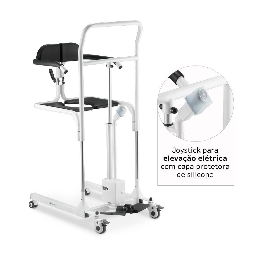 Cadeira De Transferência Dellamed Multiuso Com Elevação Eletrônica Até 135 Kg Assento 48,5cm Branco E Preto D80