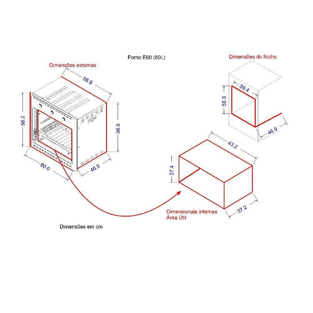 Forno Elétrico De Embutir 60 Litros Nardelli Black E60 Preto 110VApresentamos o Forno Eletrico de Embutir de 60 litros, um eletrodomestico moderno e pratico para a sua cozinha. Com capacidade generosa, ele oferece espaco suficiente para preparar refeicoes familiares ou receber convidados. Seu design de embutir proporciona integracao perfeita, economizando espaco e conferindo um visual elegante. Com controles precisos e intuitivos, voce pode selecionar a temperatura ideal e programar o tempo de cozimento com o timer integrado. O forno possui um sistema de distribuicao de calor eficiente para resultados consistentes. Sua estrutura interna e de facil limpeza e durabilidade, e conta com prateleira ajustavel. A porta de vidro duplo garante seguranca ao toque, especialmente para familias com criancas. Invista em qualidade, eficiencia e versatilidade com o Forno Eletrico de Embutir de 60 litros e transforme suas refeicoes em momentos especiais.Forno de EmbutirCaracteristicas:Forno EletricoCapacidade 60 LitrosTimer de 120 minutosTermostato ate 300CBandeja para residuosGrade InternaLuz internaLampada com protetorLuz piloto Indica se o forno esta ligadoGrill e DouradorInterior Easy CleanIsolamento termicoAbertura da porta Frontal com 2 estagios de aberturaDesign Exclusivo e modernoAmplo espaco internoEspecificacoes Tecnicas:Corrente 15 A para 127 V e 8 A para 220 VFrequencia 60 HzPotencia resistencia Superior 750 WPotencia resistencia Inferior 1000 WPotencia total 1750 WConsumo 1,2 kWhTomada para fornos 220 V devem ser de 10 ATomada para fornos 127 V devem ser de 20 AAtencao Padroes especificados e de acordo com as normas do InmetroDimensoes externas do produto A 58,2 cm x L 60 cm x P 42 cmDimensoes internas do produto A 35 cm x L 45 cm x P 37,2 cmDimensoes nicho A 55,5 cm X L 58,8 cm X P 50 cmEspaco interno 60 LitrosPeso 19,5 kg de Fabrica 12 mesesInstalacao por conta do clienteImagens meramente ilustrativas