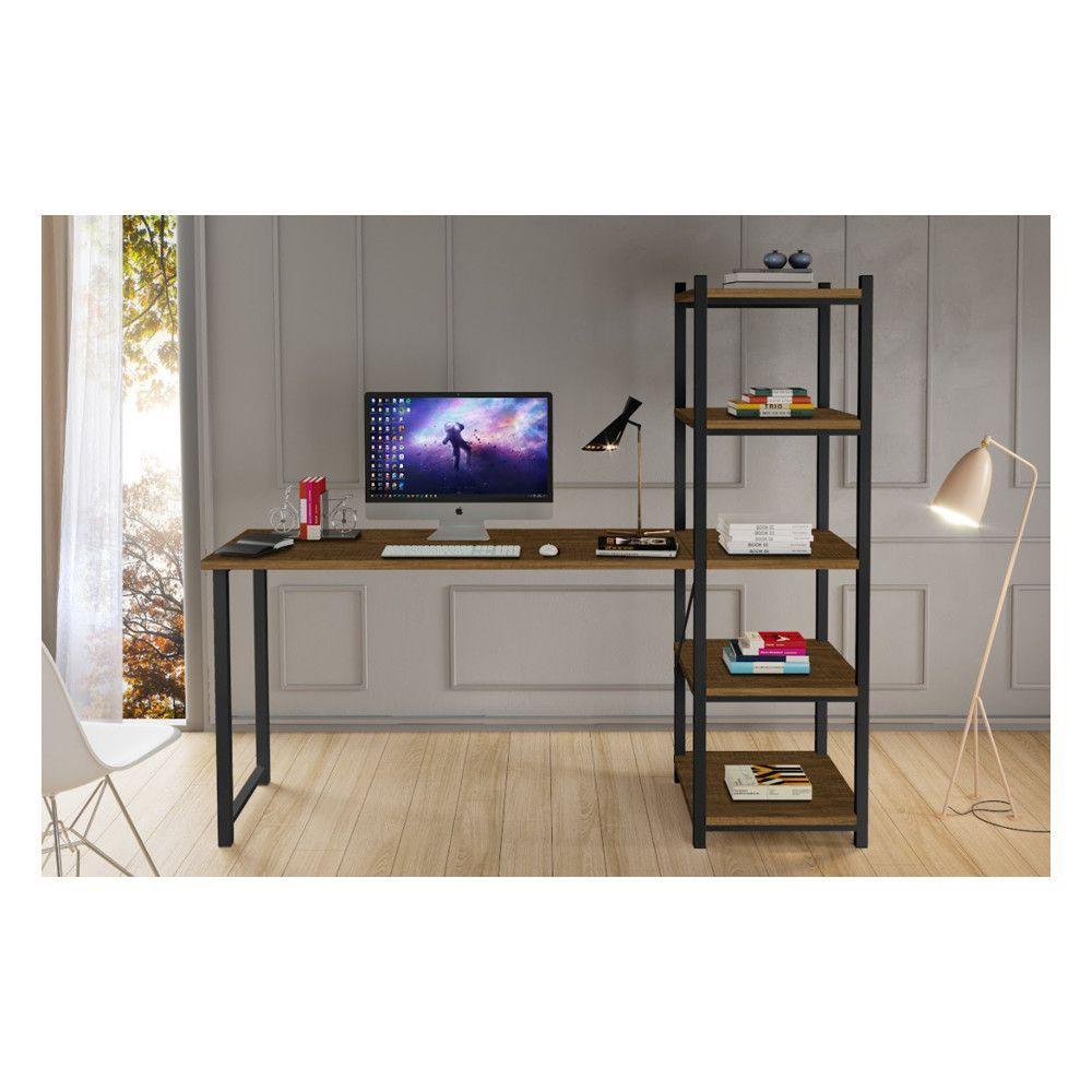 Escrivaninha Com Estante 4 Prateleiras Klm Móveis Amadeirado Com Preto
