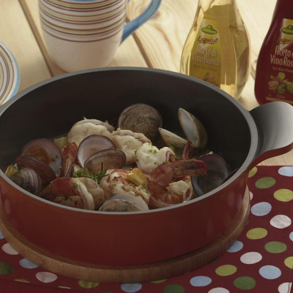 Caçarola Rasa 28cm/4,8l Com Revestimento Cerâmico - Venn - Neoflam - Cor VermelhaDescriçãoCaçarola Cerâmica Rasa Venn 28cm/4,8L (EK-VE-L28R)Descubra a praticidade e elegância da Caçarola Cerâmica de 28cm / 4,8L, um item essencial para a sua cozinha. Com um design moderno de paredes octogonais e alças perfeitamente integradas, esta caçarola é ideal para fritar, cozinhar e servir seus pratos favoritos. Fabricada em alumínio injetado de alta qualidade, ela assegura uma distribuição de calor superior, otimizando o cozimento e contribuindo para um menor consumo de energia. Desfrute da segurança e eficiência do revestimento antiaderente Ecolon, feito com minerais naturais e completamente livre de PFOA, garantindo uma culinária mais saudável e sem preocupações.Pensada para o seu dia a dia, esta caçarola antiaderente se destaca pela durabilidade superior e resistência a riscos, mantendo-se como nova por mais tempo. Sua construção inteligente, sem parafusos ou rebites em contato com o alimento, a torna excepcionalmente higiênica e fácil de limpar. A tampa com ventilação de vapor integrada eleva a segurança, prevenindo estouros e queimaduras durante o uso. Versátil, a Caçarola Cerâmica 28cm é adequada para fogões a gás, elétricos e vitrocerâmicos, adaptando-se perfeitamente a qualquer estilo de cozinha.Tecnologia Ecolon: Cozinha Saudável e SustentávelCom a tecnologia Ecolon, suas panelas de cerâmica trazem uma nova dimensão para a sua cozinha. Este revestimento, amigo do meio ambiente e do corpo humano, garante que você cozinhe sem substâncias nocivas como PFOA, cádmio ou chumbo, sendo reconhecido internacionalmente por sua segurança e por ser Eco Amigavel. Além disso, o Ecolon proporciona um poderoso desempenho antiaderente, permitindo cozinhar com menos óleo e facilitando a limpeza. Graças à sua notável resistência a riscos e desgastes, suas panelas Ecolon mantêm a beleza e o desempenho por muito mais tempo. E o melhor: a tecnologia por trás do Ecolon otimiza a distribuição de calor, fazendo com que os alimentos cozinhem de forma mais rápida e uniforme, tornando seu dia a dia na cozinha muito mais prático e eficiente.Especificações TécnicasCódigo do Produto EK-VE-L28RModelo VennPeso 2,6 KgVolume 4,8 LEspessura 4 mmMaterial Alumínio InjetadoRevestimento EcolonUso em fogões Gás, Elétrico e VitrocerâmicoCertificação PFOA FreeCor VermelhoDimensões da Caixa (AxLxC) 9cm x 28cm x 37cmCuidados-Utilizar a panela untada com óleo espalhado por toda extremidade.-Não aqueça a panela, caçarola ou frigideira vazia-Recomendamos sempre o uso em fogo baixo - médio, os produtos tem uma alta eficiência térmica-Utilize utensílios domésticos de silicone, bambo ou plástico (Nunca use objetos cortantes e pontiagudos)-Efetue a limpeza apenas utilizando detergente neutro e esponja macia-Em caso de resíduo de comida mais resistente, coloque uma gota de detergente e água, leve ao fogo baixo, por 3 minutos-Não utilize produtos abrasivos ou químicos para a limpezaGarantia90 dias de garantia legal para defeitos de fabricação.A garantia não inclui defeitos causados por má utilização do produto.