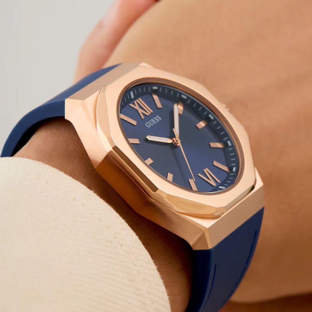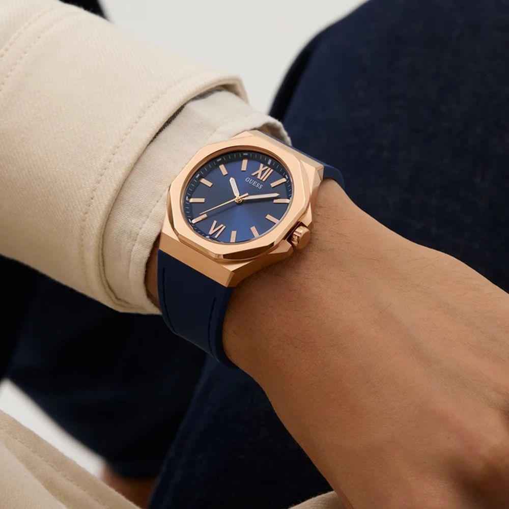 Relógio Guess Masculino Gw0850g3 AzulRelógio Guess Masculino GW0850G3 Azul e RoseGuess, a marca Californiana criadas para pessoas que gostam de luxo e elegância! Os Relógios Guess possuem design próprio que realçam sua beleza e seu lifestyle. A linha Guess Masculino tem o conceito de trazer a sofisticação para o Homem moderno.Especificações Técnicas Mecanismo: Analógico (Quartzo) Gênero: Masculino Visor: Azul Vidro: Cristal mineral Prova d'água: 50m Diâmetro da caixa: 42 mm Características: Pulseira em Silicone Tipo de fecho: Fivela Garantia: 1 ano pela fabricante GuessRelógio 100% Original, acompanha caixa, manual, certificado de garantia Guess e NF.Somos revendedores oficial e autorizado da GUESS, todos os relógios comercializados pela nossa empresa possuem GARANTIA NACIONAL do FABRICANTE e caso o produto que adquiriu apresente algum defeito durante o período da garantia, basta encaminhá-lo diretamente à assistência técnica mais próxima de sua região, sempre acompanhado do CERTIFICADO de GARANTIA e NOTA FISCAL.