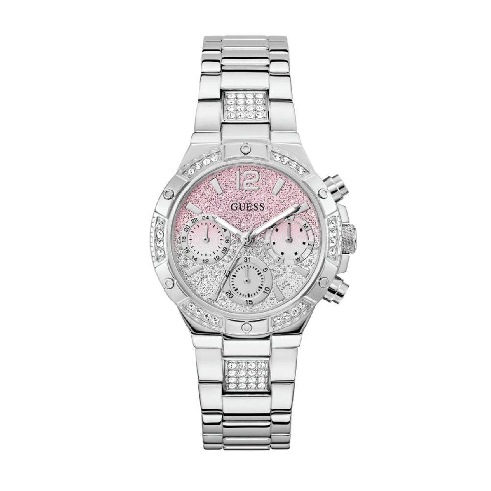 Relógio Guess Feminino Harlow Gw0950l1 PrataRelógio Guess Feminino Harlow GW0950L1 PrataIncorpore um glamour divertido ao seu visual do dia a dia com este elegante relógio multifuncional Guess. A pulseira de aço inoxidável prateado e a caixa adornada com cristais combinam perfeitamente com um mostrador em degradê rosa e prata brilhante, criando uma declaração feminina e elegante. Com submostradores multifuncionais para dia, data e exibição de 24 horas, ele oferece elegância e praticidade. Este relógio deslumbrante foi projetado para mulheres que amam moda com um toque de brilho e sofisticação.Especificações Técnicas Mecanismo: Analógico (Quartzo) Gênero: Feminino Visor: Prata Vidro: Cristal mineral Resistente à água: 50m Características: Pulseira e caixa em aço inoxidável prata, com detalhes em cristais Diâmetro da caixa: 38mm Tipo de fecho: Fivela Simples Garantia: 1 ano pela fabricante GuessRelógio 100% Original, acompanha caixa, manual, certificado de garantia Guess e NF.Somos revendedores oficial e autorizado da GUESS, todos os relógios comercializados pela nossa empresa possuem GARANTIA NACIONAL do FABRICANTE e caso o produto que adquiriu apresente algum defeito durante o período da garantia, basta encaminhá-lo diretamente à assistência técnica mais próxima de sua região, sempre acompanhado do CERTIFICADO de GARANTIA e NOTA FISCAL.