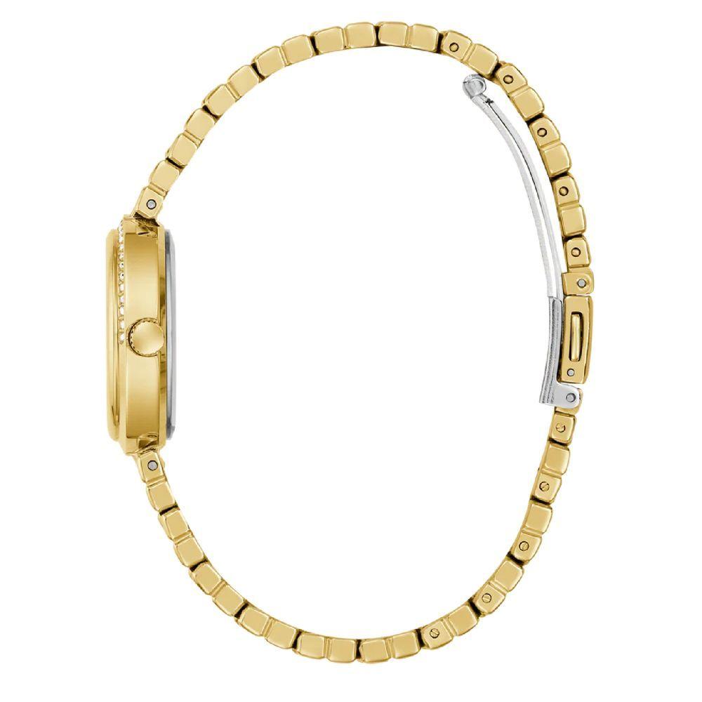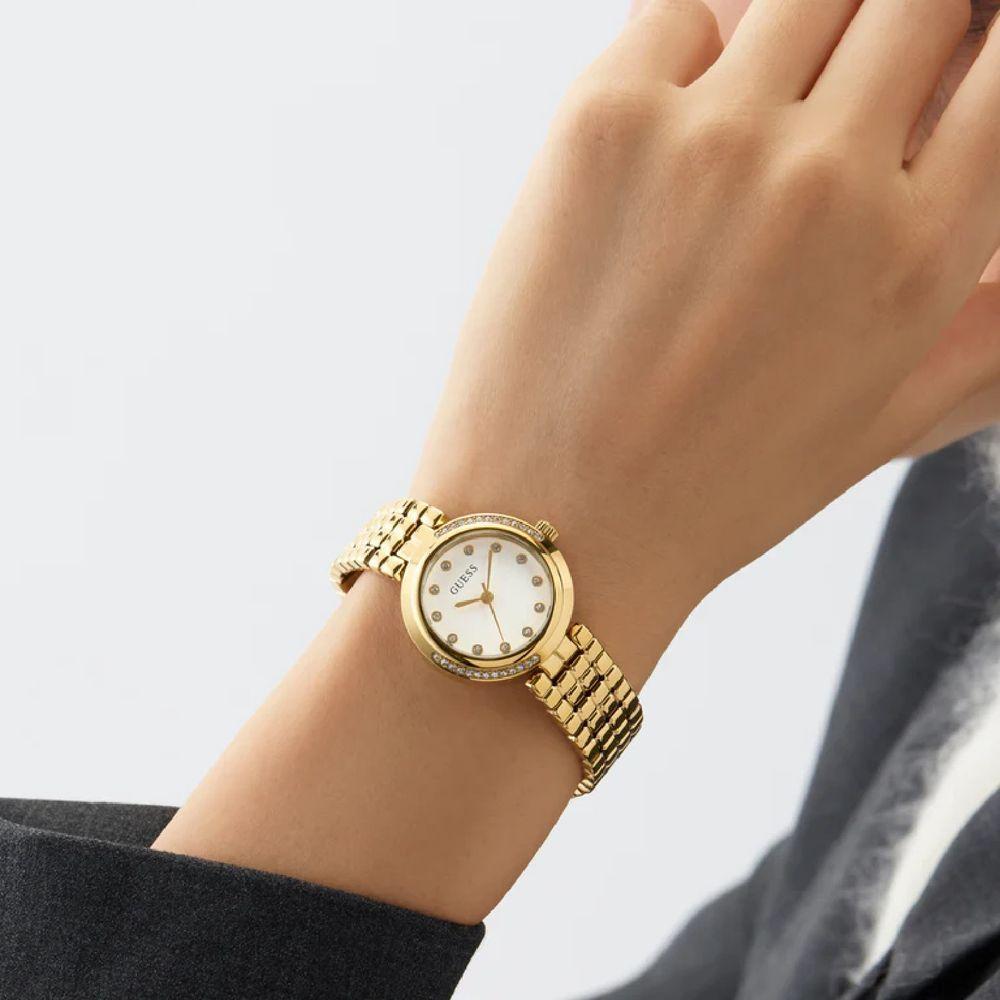 Relógio Feminino Guess Gw0930l2 DouradoRelógio Feminino Guess GW0930L2 DouradoEncante-se com o toque sofisticado do Guess GW0930L4, um relógio feminino que combina estilo, delicadeza e responsabilidade. Com caixa compacta de 28 mm em aço reciclado na tonalidade dourada, mostrador branco e detalhes em cristais assimétricos no aro, ele se destaca tanto em looks do dia a dia quanto em ocasiões especiais. A pulseira trabalhada em aço reciclado com textura tipo “bead” completa o visual com charme e suavidade no pulso.Funcional e refinado, possui mecanismo quartz preciso e resistência à água de 30 metros. Um acessório que une moda, sustentabilidade e bom gosto.Especificações Técnicas Mecanismo: Analógico (Quartzo) Gênero: Feminino Visor: Branco Vidro: Cristal mineral Resistente à água: 30m Características: Cravejado em cristais na caixa Diâmetro da caixa: 28mm Tipo de fecho: Fivela Simples Garantia: 1 ano pela fabricante GuessRelógio 100% Original, acompanha caixa, manual, certificado de garantia Guess e NF.Somos revendedores oficial e autorizado da GUESS, todos os relógios comercializados pela nossa empresa possuem GARANTIA NACIONAL do FABRICANTE e caso o produto que adquiriu apresente algum defeito durante o período da garantia, basta encaminhá-lo diretamente à assistência técnica mais próxima de sua região, sempre acompanhado do CERTIFICADO de GARANTIA e NOTA FISCAL.
