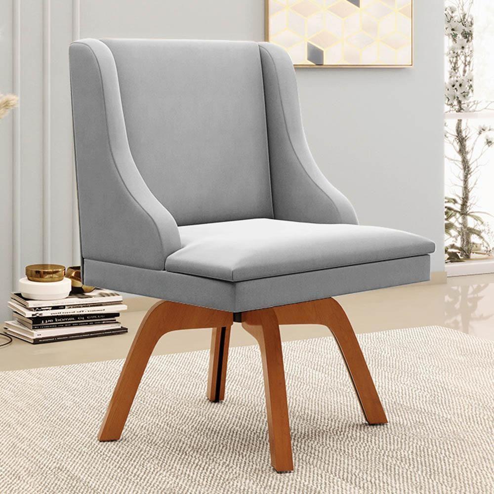 Kit 4 Cadeiras Estofadas Giratória Para Sala De Jantar Lia Suede Cinza - Ibiza