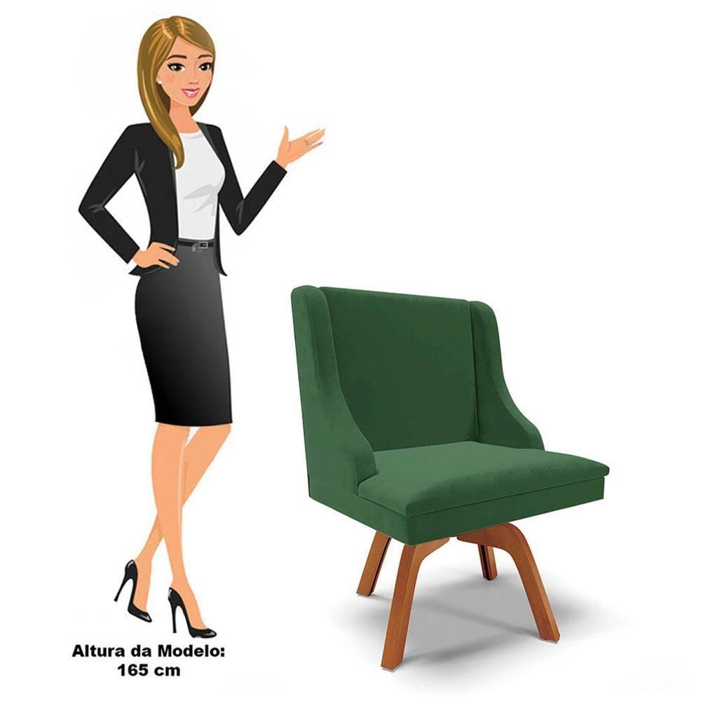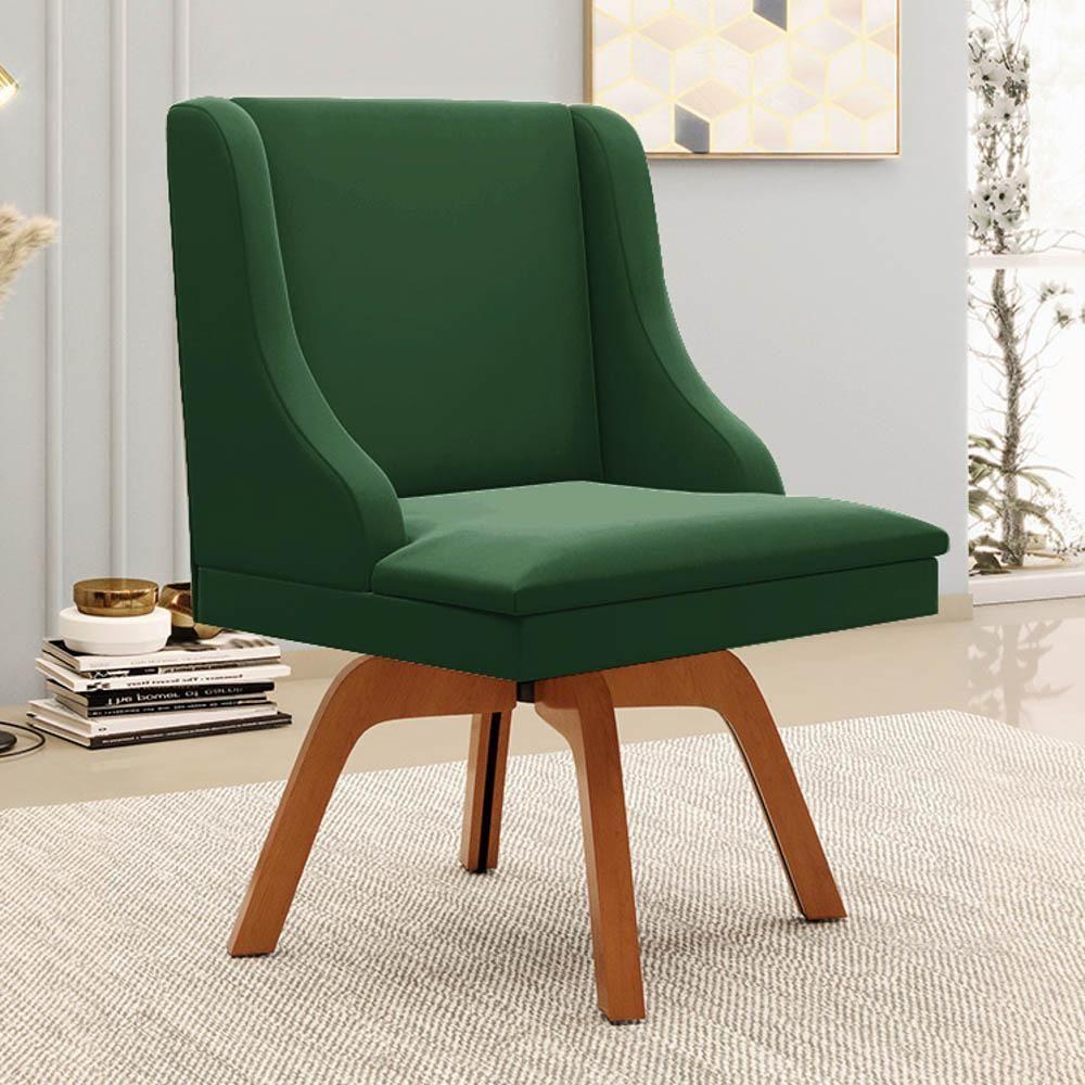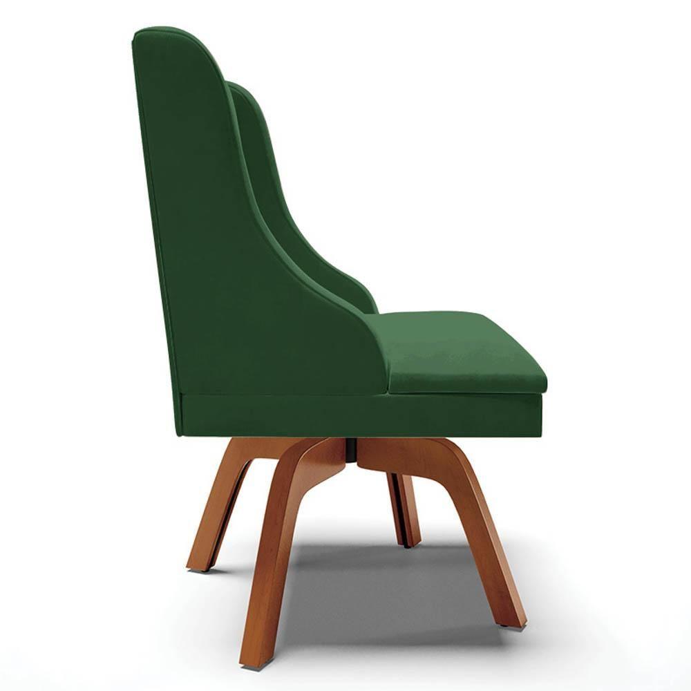 Kit 4 Cadeiras Estofadas Base Giratória De Madeira Lia Veludo Verde Esmeralda - Ibiza