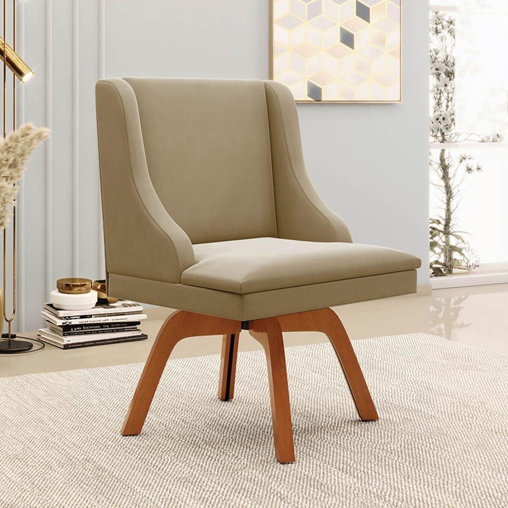 Kit 4 Cadeiras Estofadas Giratória Para Sala De Jantar Lia Suede Marrom Rt - Ibiza