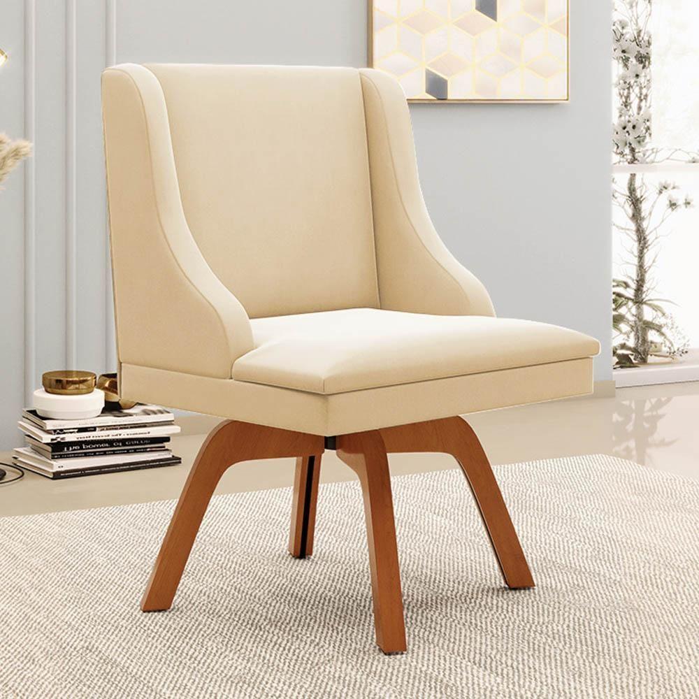 Kit 4 Cadeiras Estofadas Giratória Para Sala De Jantar Lia Suede Bege - Ibiza