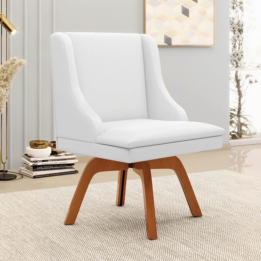 Kit 4 Cadeiras Estofadas Para Sala De Jantar Base Giratória De Madeira Lia Sintético Branco - Ibiza