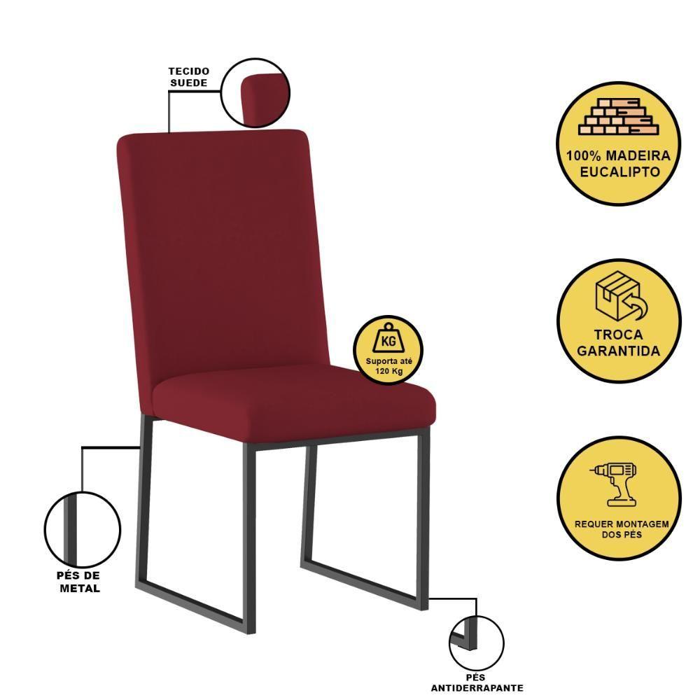 Cadeira Para Mesa Jantar Com Base De Ferro Preto - Balaqui Cor:marsala MarsalaTransforme o seu ambiente com a Cadeira Estofada para Mesa de Jantar com Base Industrial Preto. Esta cadeira é a combinação perfeita de conforto, durabilidade e um design moderno, ideal para mesas de jantar, áreas de estar e até mesmo ambientes comerciais. Especificações do produto Tecido em Suede 100% poliéster Espuma D-23 com Alta densidade Percintas Elásticas que oferecem suporte adicional e aumentam a durabilidade do assento Estrutura de madeira eucalipto sustentável proveniente de reflorestamento Base industrial dourada com pés de ferro Informações Técnicas Dimensões Altura: 94 cm Largura: 45 cm Profundidade: 50 cm Peso: 7 kg Capacidade de Suporte: O produto suporta até 120 kg, proporcionando segurança e estabilidade para todos os usuários Produto embalado Altura: 59 cm Largura: 50 cm Profundidade: 43 cm Peso: 7,5 kg Observações Importantes O produto tem 3 meses de garantia contra defeitos de fabricação Produto possui uma embalagem segura, embalado com total segurança para evitar danos durante o transporte O Produto entregue é montado, com exceção dos pés de ferro, que devem ser parafs pelo cliente. A montagem dos pés de ferro é simples e rápida A cor real pode variar ligeiramente devido às configurações da tela e ao tratamento das imagens O Prazo de envio é de 5 dias úteis após a confirmação da compra e enviamos para todas as regiões do Brasil Perguntas Frequentes Como devo realizar a limpeza do produto? Realizar a limpeza do tecido com um pano seco ou levemente umedecido e utilize produtos específicos para manter sua aparência e durabilidade A cadeira é adequada para ambientes comerciais? Sim, a combinação de estilo e conforto torna esta cadeira ideal para recepções, consultórios e áreas de espera, criando um ambiente acolhedor e Quantas produtos irei receber nesta compra? Você receberá um volume, ou seja, apenas uma Cadeira Estofada para Mesa de Jantar com Base Industrial Preto. Para mais informações ou assistência com sua compra, nossa equipe está à disposição para ajudar Fabricante: BALAQUI DECOR | Largura: 62 CM | Altura: 57 CM | Profundidade: 55 CM | Precisa de baterias ou pilhas: Não | Regulamentações aplicáveis a produtos perigosos: Não se aplica | Material dos Pés: Madeira | Tipo de Estrutura: Madeira | Peso Suportado: 100KG Cor: Marsala