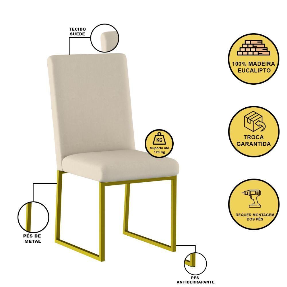 Cadeira Para Mesa Jantar Com Base De Ferro Dourado - Balaqui Bege