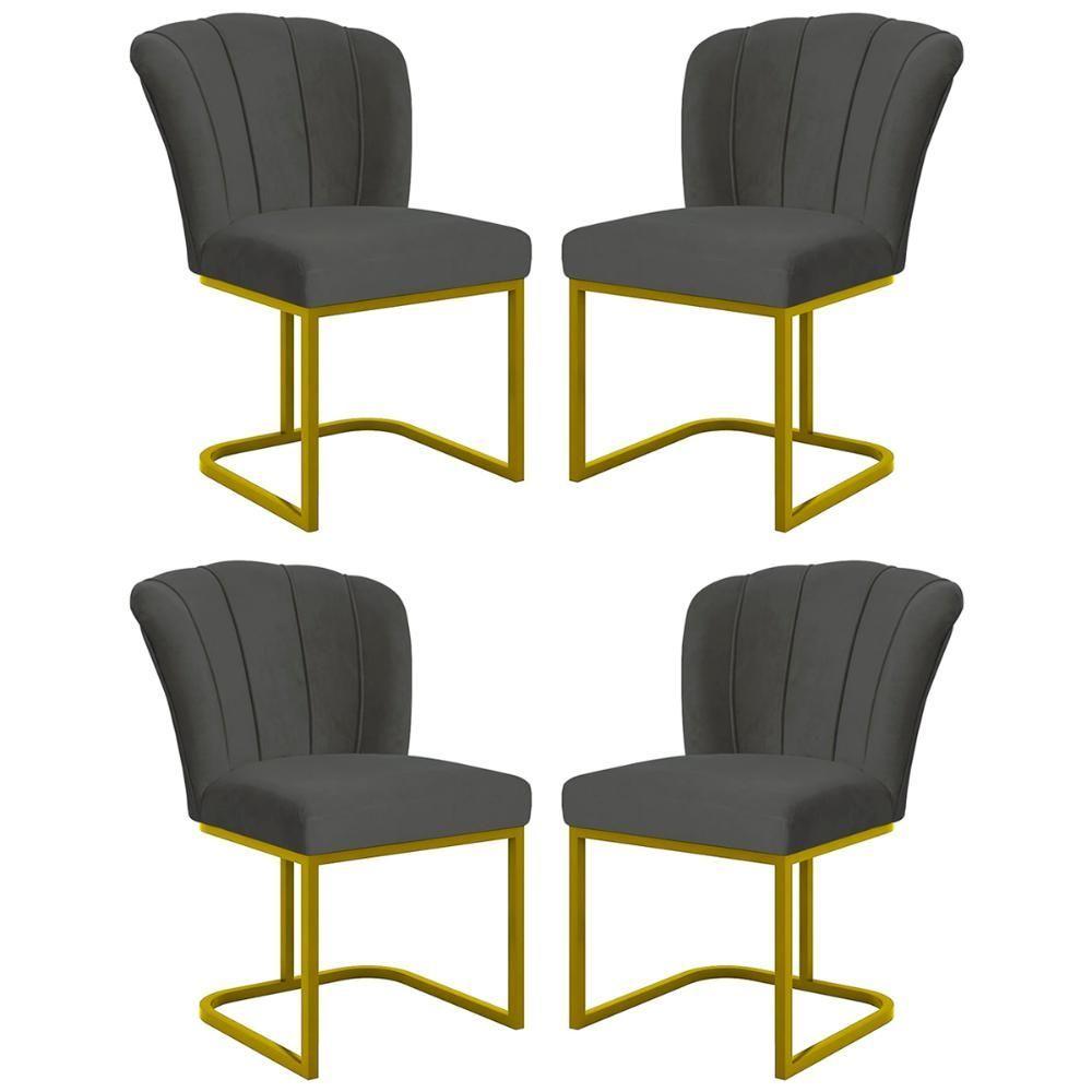 Kit 4 Cadeiras Jantar Flor Mesa Cozinha Reforçada Base Metal Dourada Cinza
