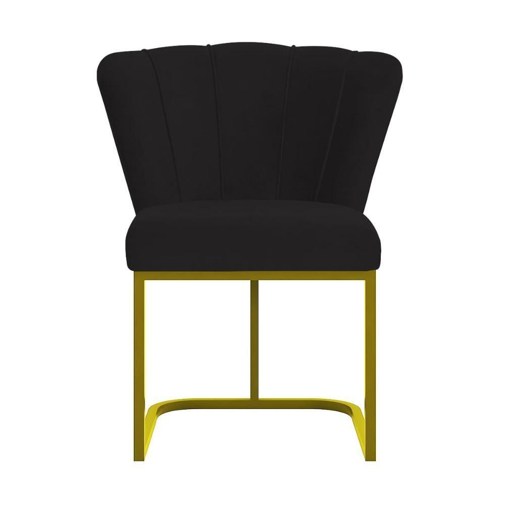 Kit 4 Cadeiras Jantar Flor Mesa Cozinha Reforçada Base Metal Dourada Preto