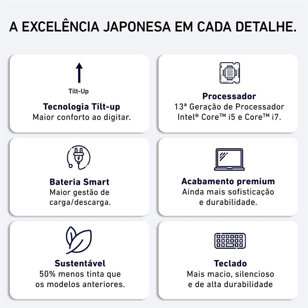 Notebook VAIO® F14 Intel® Core i5-1334U Windows 11 Home 16GB RAM 512GB SSD 14'' Full HD IPS com Fingerprint Cinza Escuro Notebook Vaio® F14 Intel® Core I5-1334u Windows 11 Home 16gb Ram 512gb Ssd 14'' Full Hd Ips Com Fingerprint Cinza EscuroNotebook VAIO F14, 13ª gen Intel Core i5, 16GB 512GB SSD, 14” Full HD Antirreflexo, Windows 11 Home Plus, Gunmetal, Desbloqueio por DigitalO VAIO F14 é um notebook desenvolvido com tecnologia japonesa para entregar conforto, desempenho e sofisticação. Possui acabamento em metal que combina robustez com um visual moderno e elegante, ideal para quem busca mobilidade com estilo. A tela de 14 polegadas com resolução Full HD e acabamento antirreflexo oferece imagens nítidas e uma experiência visual agradável em qualquer ambiente.Equipado com processador Intel Core i e gráficos Intel UHD, oferece desempenho fluido para tarefas diárias. Conta com leitor biométrico integrado ao botão de ligar e reconhecimento facial via câmera HD 720p, garantindo segurança e acesso personalizado. Suporta até 16GB de memória RAM e SSD de até 1TB, possibilitando agilidade e amplo espaço para arquivos e projetos.O notebook possui dois microfones digitais, cancelamento inteligente de ruído e webcam cover para proteção de privacidade. A bateria entrega até 10 horas de autonomia e a entrada USB-C amplia a praticidade no uso diário.Diferenciais e Destaques do Produto:Processador Intel Core i com desempenho para uso diárioPlaca gráfica Intel UHD com suporte a tarefas multimídiaTela de 14 polegadas Full HD com acabamento antirreflexoLeitor de digital no botão liga/desliga e reconhecimento facial na câmeraDesign com acabamento em metalDois microfones digitais com cancelamento inteligente de ruídoWebcam cover para proteção de privacidadeBateria com até 10 horas de duraçãoPorta USB-CEspecificações Técnicas:Processador: Intel Core i5-1334U, 13ª Geração 3.40 GHz (Burst até 4.60 GHz), 12MB Cache, 10 Núcleos, 12 ThreadsProcessador:: Intel Core i5Condição:: NovoSistema Operacional: Windows 11 HomeANATEL_HOMOLOGATION_NUMBER: 120692104423Conteúdo da embalagem: Notebook, Adaptador CA com cabo padrão Inmetro (carregador), Guia Rápido e Certificado de GarantiaFabricante:: VaioSistema Operacional:: Windows 11Memória RAM: 1x16GB DDR4 SO-DIMM, 16GB RAM total (Módulo)Linha:: F14Slots de Memória: 1x 32GBLeitor de Cartões: micro SDSSD:: 512GBWebcam: Câmera Frontal HD 720pMemória RAM:: 16GBTela: 14'' LED FHD, IPS, Widescreen, 1920 x 1080, 16:9, Antirreflexiva, 60HzTela:: 14Vídeo: Intel UHD GraphicsResolução:: Full HDÁudio: Áudio de alta definição (HD Áudio), Microfone e alto-falantes estéreo embutidosCor:: Cinza EscuroConectividade: Bluetooth 5.2 / Wireless Wi-Fi (IEEE 802.11AX: Wi-Fi 6)Portas de Conexão: 1 HDMI 1.4, 2 USB 3.0/3.2 Gen 1, 1 USB 3.2 Tipo C, 1 combo (microfone/áudio), 1 LAN RJ45Teclado: Português-Brasil ABNT2, 88 teclas + tecla PowerMouse: Touchpad com toque múltiplo, 2 botões integradosCarregador: 65W 100: 240V 19V / 3.42A (50: 60Hz)Bateria: 2 células, Li-Polímero 51Wh, até 10 horasDimensões: 32,9 x 1,97 x 22,1 cmPeso Líquido: 1,34 kgPeso Bruto: 1,89 kgEmbalagem: 42,5 x 6 x 26 cmGarantia: 12 MesesPart Number | EAN: 3344895 | 7908068824213Armazenamento: 512GB SSD M.2 NVMe Gen4 2500 Mbps / 1x M.2 (PCIe Gen4 / Gen3), Capacidade máx. 1TBÂngulo da tela: 180°Segurança: Trava Kensington Lock, Desbloqueio digital (Fingerprint)Expansão de Memória até: 32GBLinha do processador: CoreVersão do sistema operacional: 11Edição do sistema operacional: HomeTipo de memória RAM: DDR4Velocidade máxima do processador: 4.6Idioma do teclado: PortuguêsPortas USB: 4Tipo de resolução da webcam: HDCapacidade máxima suportada da memória RAM: 32Largura: 32,9Profundidade: 22,1Altura: 1,97Velocidade mínima do processador: 3.4É 2 em 1: NãoCom tela tátil: NãoÉ ultrabook: NãoÉ gamer: NãoCom USB: SimCom Wi-Fi: SimCom HDMI: SimCom Bluetooth: SimCom webcam: SimCom microfone: SimCom saída para fones de ouvido: SimCom porta ethernet: SimCom teclado numérico: NãoCom leitor de impressão digital: SimCom teclado retroiluminado: NãoCom leitor de cartão de memória: SimCom tela antirreflexo: SimInclui lápis: NãoCapacidade Optane: 0Quantidade de núcleos: 10Capacidade da Bateria: 51WhÉ Netbook: NãoModelo Alfa Numérico: PC8970C11X-B0911HModelo do Processador: 1334UTaxa de atualização da tela: 60Hz