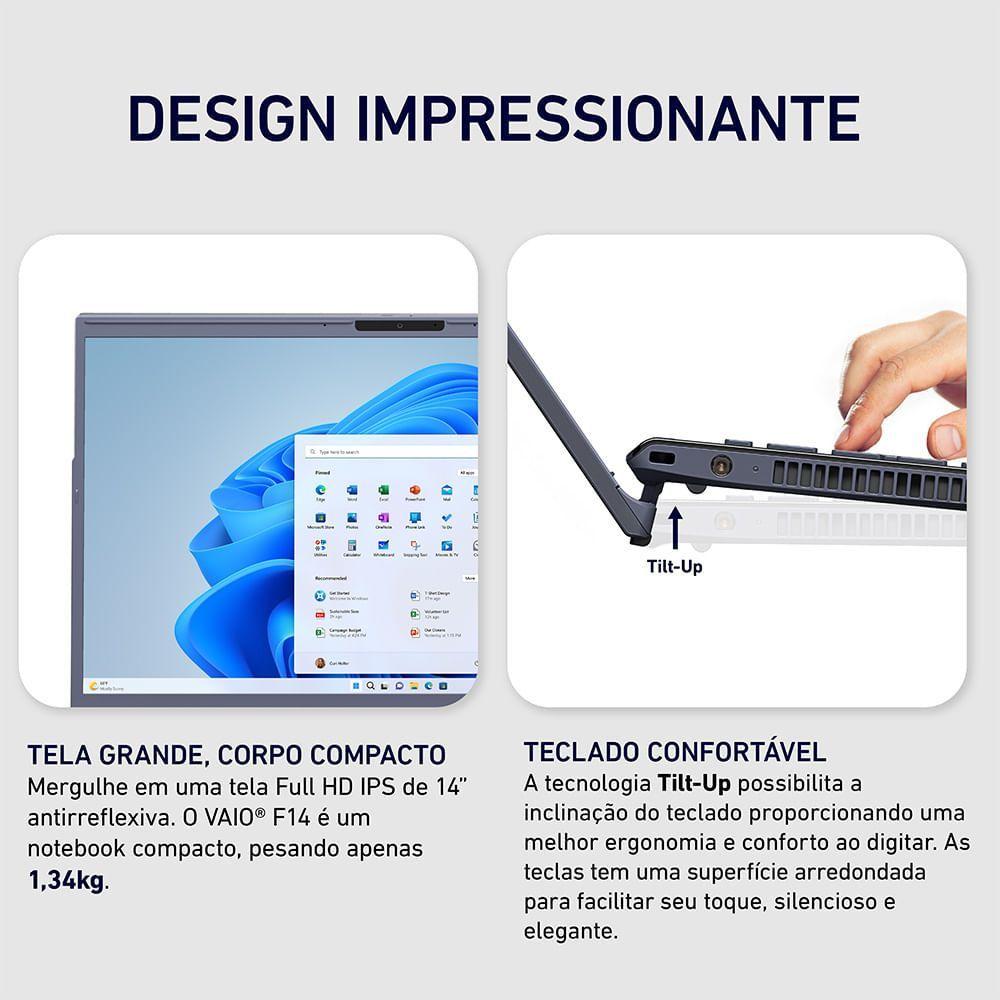Notebook VAIO® F14 Intel® Core i5-1334U Windows 11 Home 16GB RAM 512GB SSD 14'' Full HD IPS com Fingerprint Cinza Escuro