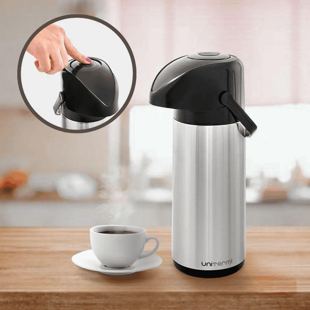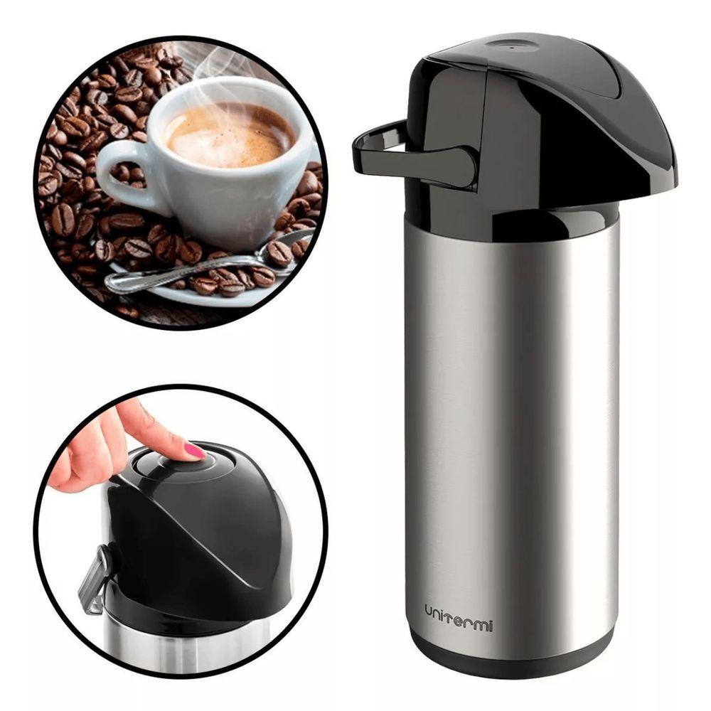 Garrafa Termica 1l Verona Inox - Unitermi 8.5.013Sobre este item Elas apresentam diversos designs, como modelos com rosca ou pressão, e materiais como inox, plástico, e metalizados, proporcionando opções para diferentes preferências estéticas. Sistema de isolamento térmico, seja de pressão ou rolha, é altamente eficiente, permitindo manter a temperatura desejada por várias horas. As garrafas térmicas possuem sistemas de abertura práticos, como pressão, rolha ou gatilho, facilitando o uso diário. São projetadas para fácil limpeza, com recursos que evitam vazamentos e garantem segurança no transporte.