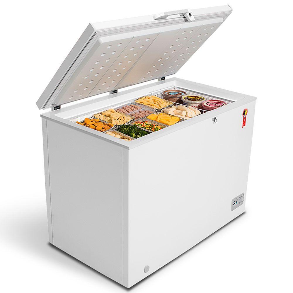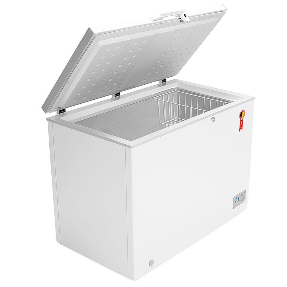 Freezer RCFA32 295 Litros 60hz Midea Branco 220VMantenha seus alimentos sempre conservados no Freezer Horizontal Midea 295L. Ele traz quatro funcoes para resfriar, conservar e congelar, atraves do termostato externo com 9 opcoes de temperatura. Alem disso, a funcao Freezer + possibilita resfriar os alimentos de forma mais rapida. Pratico, possui abertura de porta superior com puxador ergonomico e rodizios que ajudam no transporte, seu dreno frontal para escoamento da agua do degelo facilita na hora da limpeza. Tambemacompanha um cesto aramado para organizacao dos alimentos e fechadura com chave. Nao agride a camada de Ozonio, pois e livre de CFC.Operacao Freezer: minimo de -28C e maximo de -12C.Temperatura de operacao do conservador/refrigerador: minimo de 0C e maximo de 10C.Caracteristicas do Produto:Marca: MideaModelo: RCFA32Material de fabricacao: PSAI/ Aco galvanizadoCapacidade: 295LConsumo: 29,7 kWh/mesFrequencia: 60 HzTipo: 10AFuncoes do Produto: resfriar, Conservar e Freezer + .Baixo Nivel de RuidoCesto aramado e fechadura com chave.Ecologicamente correto: nao utiliza CFC.Puxador Ergonomico e abertura de porta superiorRodizios que facilitam o transporteFuncao Freezer+: mantem o compressor ligado, atingindo temperaturas baixas em muito menos tempo.Termostato externo com 9 opcoes de temperatura: mais opcoes para voce coservar e resfriar todo tipo de alimentoSelo PROCEL: classificacao A de economia no INMETRO. Ate 50 a mais de economia comparado a modelos similares.Dimensoes do Produto:Altura: 85 cmLargura: 112 cmProfundidade: 68 cmPeso: 42 kgGarantia do Fabricante: 3 meses e 120 meses no compressor.