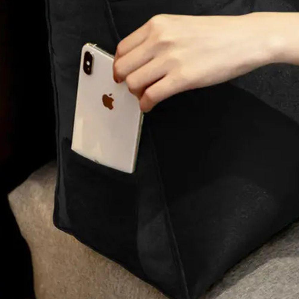 Almofada Para Cabeceira Encosto Apoio Lombar Spot 90cm Com Porta Celular Suede - Abmaza Cor Preto
