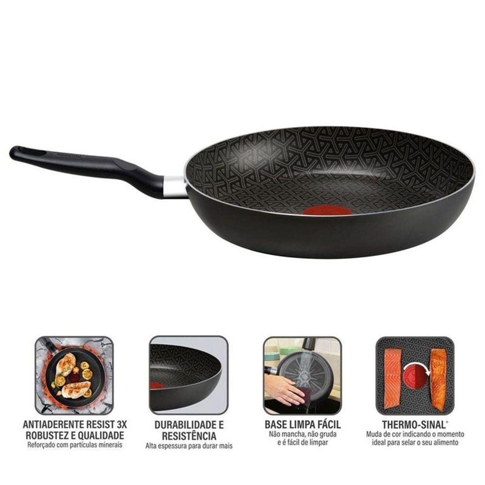Frigideira Rochedo Robusta 18cm Grafite GrafiteLinha Rochedo Robusta, com antiaderente Resist 3x: robustez e qualidade. Reforcado com particulas minerais, dura mais. Com a Frigideira Rochedo Robusta Grafite 18cm voce surpreende sua familia com robustez e durabilidade. Conheca todos os diferenciais dessa linha: Antiaderente Resist 3X: Robustez e Qualidade. Reforcado com particulas minerais, dura mais. Durabilidade e resistencia: Alta espessura para durar mais Base limpa facil: Nao mancha, nao gruda e e facil de limpar. Thermo-sinal: Muda de cor indicando o momento ideal para selar seu alimento. Alem de contar com a qualidade da marca Rochedo, presente no Brasil ha mais de 100 anos, a Frigideira Rochedo Robusta Grafite 18cm e livre de substancias toxicas (PFOA), garantindo a seguranca no uso do produto. Pode ir em todos os tipos de fogoes, exceto inducao, compativel com maquina de lavar loucas.Especificacao tecnica.Modelo: Robusta.Cor: Grafite.Tipo de material: Aluminio.Fontes de calor: Todos, exceto inducao.Conteudo da embalagem: 1 Frigideira 18cm.