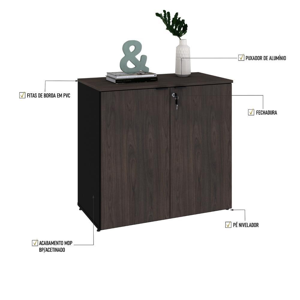 Armário Baixo Com 02 Portas 75x80x42cm Wlab80 Preto Tx Com terracota