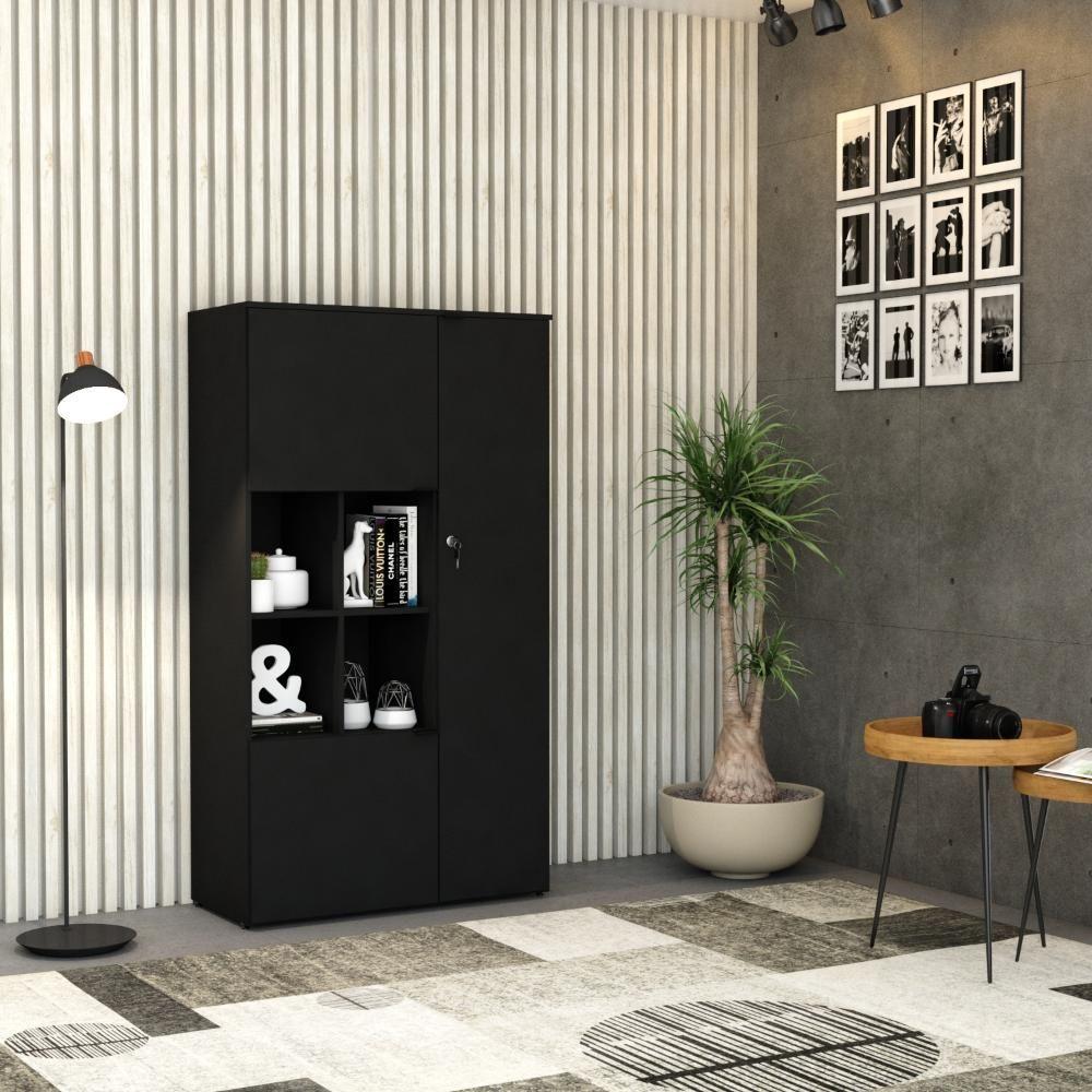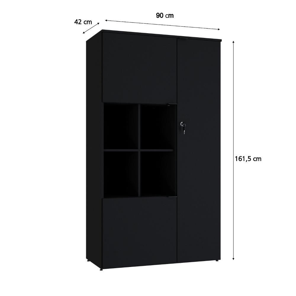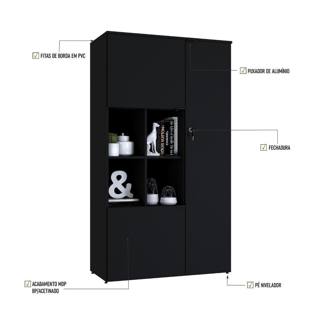 Armário Alto Com nicho E 03 Portas 161,5x90x42cm Wlan90 Preto ônix