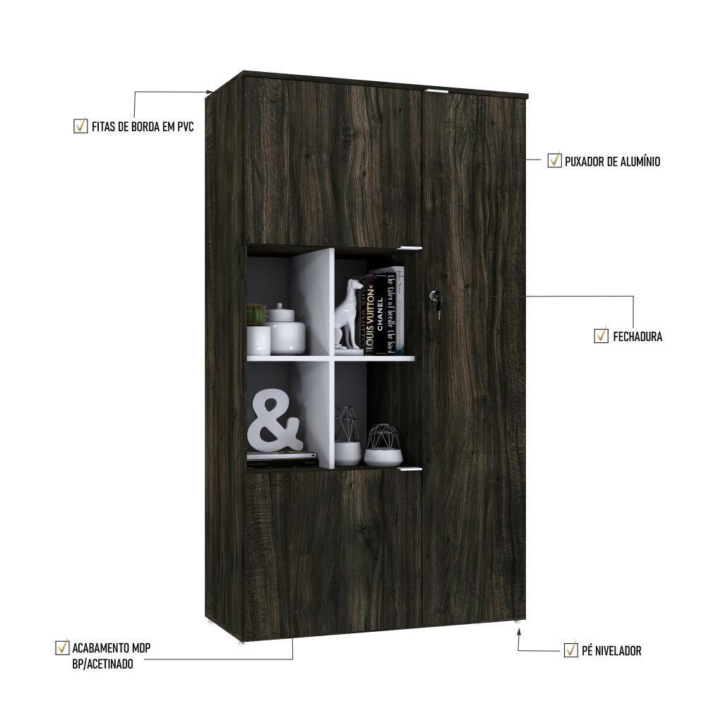Armário Alto C/nicho E 03 Portas 161,5x90x42cm Wlan90 Carvalho Dark / Branco Carvalho Dark / BrancoSobre o ProdutoArmário Alto C/Nicho e 03 Portas 161,5x90x42cm WLAN90 Carvalho / BrancoDescrição do Produto:O Armário Alto com Nicho WLAN90 WorkLab é a escolha perfeita para quem busca um móvel versátil e funcional. Combinando três portas e um nicho aberto, ele oferece espaço de armazenamento e exibição em um único design. Com linhas limpas e detalhes elegantes, suas portas possuem dobradiças com amortecedor que garantem um fechamento suave e silencioso, além dos puxadores em alumínio, discretos e funcionais. Seja para armazenar documentos importantes, exibir sua coleção de livros ou manter seus materiais organizados, o Armário WLAN90 WorkLab é a escolha perfeita para escritórios, home offices ou ambientes corporativos. Ele combina funcionalidade com estilo, elevando a estética do seu espaço de linha WorkLab combina funcionalidade, design contemporâneo e durabilidade para criar um ambiente de trabalho eficiente e inspirador. Com uma ampla variedade de peças versáteis, a WorkLab oferece soluções completas para escritórios, home offices e espaços corporativos. Explore os principais componentes dessa linha e ache a escolha certa para quem busca qualidade, design e funcionalidade em móveis de escritório. Transforme seu espaço de trabalho com a elegância e praticidade da linha Inclusos:1 Armário c/NichoDimensões dos Produtos:Armário Alto C/Nicho e 03 Portas 161,5x90x42cm WLAN90 Carvalho / Branco: 90 x 42 x 161,5 cmInformações Logísticas (Comp. X Prof. X Alt.) 164 x 44 x 7 cm - Peso: 26,845 100 x 51 x 11 cm - Peso: 26,74 KgPeso Total: 53,585 KgObservações:Não acompanha acessórios decorativos. Imagens meramente ilustrativas.Informações Técnicas / Características:- Cor do Produto: Carvalho / Branco- Cor do Predominante: Marrom Claro- Marca: Compace- Modelo: WLAN90- Linha: WorkLab- Material: Mdp - Acabamento: Perffect Acetinado- Escala de Brilho: Fosco- Fita de Borda: Pvc- Possui Portas: 3- Tipo de Porta: Bater- Tipo da Dobradiça: Metálica C/Amortecedor- Possui Gavetas: Não - Possui Chave: Sim - Material do Puxador: Alumínio- Possui Prateleiras: 5- Peso Máximo por Prateleira: 10kg - Pés Niveladores: Sim - Acabamento Estrutura: BP- Formato: Retangular- Possui Nicho: 4 - Suporta Até (kg): 80kg- Comprimento: 90cm- Profundidade: 42cm- Altura: 161,5cm - Peso Lí.: 52,1Kg- Recomendações de Uso, Manutenção e Limpeza: Para a limpeza, utilize flanela seca ou pano macio levemente umedecido em água. Utilize um pano seco em seguida. Evite com produtos químicos (solventes, thinner, acetona, etc) e não utilize nenhum tipo de esponja de aço.- Necessita de Montagem: Sim / Acompanha Manual de Montagem- Complexidade da Montagem: Alta: deve ser montado por um montador especializado.- Garantia: 6 meses Comprimento: 90 | Largura: 42 | Marca: Compace | Altura: 161 | Quantidade máxima de pedido: 1 | Quantidade de volumes: 2 | Modelo: WLAN90 | Necessita montagem: Sim | Profundidade: 42 | Produto: Armário | Tonalidade: Multicolorido | Cor: PF Cor: Carvalho Dark / Branco