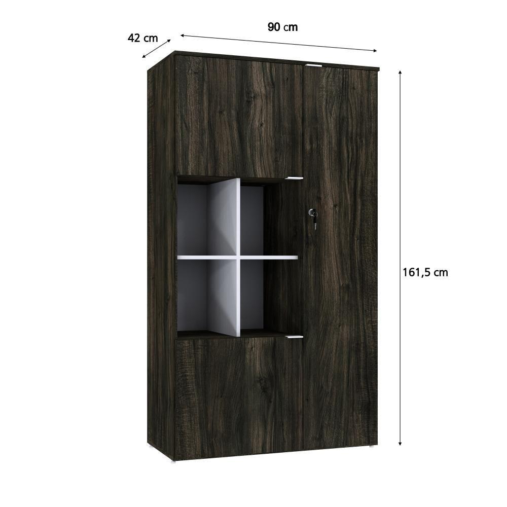 Armário Alto Com nicho E 03 Portas 161,5x90x42cm Wlan90 Carvalho Dark - Branco