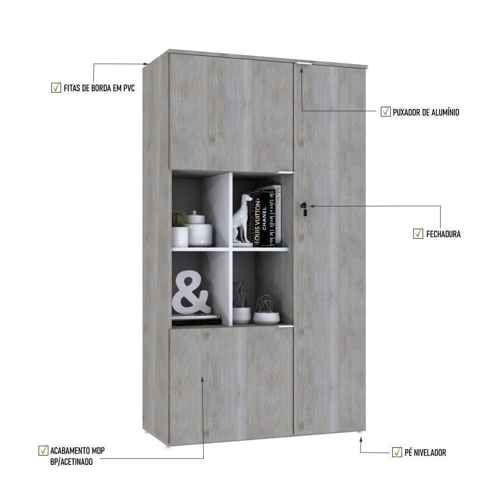 Armário Alto C/nicho E 03 Portas 161,5x90x42cm Wlan90 Snow / Branco Snow / BrancoSobre o ProdutoArmário Alto C/Nicho e 03 Portas 161,5x90x42cm WLAN90 Carvalho / BrancoDescrição do Produto:O Armário Alto com Nicho WLAN90 WorkLab é a escolha perfeita para quem busca um móvel versátil e funcional. Combinando três portas e um nicho aberto, ele oferece espaço de armazenamento e exibição em um único design. Com linhas limpas e detalhes elegantes, suas portas possuem dobradiças com amortecedor que garantem um fechamento suave e silencioso, além dos puxadores em alumínio, discretos e funcionais. Seja para armazenar documentos importantes, exibir sua coleção de livros ou manter seus materiais organizados, o Armário WLAN90 WorkLab é a escolha perfeita para escritórios, home offices ou ambientes corporativos. Ele combina funcionalidade com estilo, elevando a estética do seu espaço de linha WorkLab combina funcionalidade, design contemporâneo e durabilidade para criar um ambiente de trabalho eficiente e inspirador. Com uma ampla variedade de peças versáteis, a WorkLab oferece soluções completas para escritórios, home offices e espaços corporativos. Explore os principais componentes dessa linha e ache a escolha certa para quem busca qualidade, design e funcionalidade em móveis de escritório. Transforme seu espaço de trabalho com a elegância e praticidade da linha Inclusos:1 Armário c/NichoDimensões dos Produtos:Armário Alto C/Nicho e 03 Portas 161,5x90x42cm WLAN90 Carvalho / Branco: 90 x 42 x 161,5 cmInformações Logísticas (Comp. X Prof. X Alt.) 164 x 44 x 7 cm - Peso: 26,845 100 x 51 x 11 cm - Peso: 26,74 KgPeso Total: 53,585 KgObservações:Não acompanha acessórios decorativos. Imagens meramente ilustrativas.Informações Técnicas / Características:- Cor do Produto: Carvalho / Branco- Cor do Predominante: Marrom Claro- Marca: Compace- Modelo: WLAN90- Linha: WorkLab- Material: Mdp - Acabamento: Perffect Acetinado- Escala de Brilho: Fosco- Fita de Borda: Pvc- Possui Portas: 3- Tipo de Porta: Bater- Tipo da Dobradiça: Metálica C/Amortecedor- Possui Gavetas: Não - Possui Chave: Sim - Material do Puxador: Alumínio- Possui Prateleiras: 5- Peso Máximo por Prateleira: 10kg - Pés Niveladores: Sim - Acabamento Estrutura: BP- Formato: Retangular- Possui Nicho: 4 - Suporta Até (kg): 80kg- Comprimento: 90cm- Profundidade: 42cm- Altura: 161,5cm - Peso Lí.: 52,1Kg- Recomendações de Uso, Manutenção e Limpeza: Para a limpeza, utilize flanela seca ou pano macio levemente umedecido em água. Utilize um pano seco em seguida. Evite com produtos químicos (solventes, thinner, acetona, etc) e não utilize nenhum tipo de esponja de aço.- Necessita de Montagem: Sim / Acompanha Manual de Montagem- Complexidade da Montagem: Alta: deve ser montado por um montador especializado.- Garantia: 6 meses Comprimento: 90 | Largura: 42 | Marca: Compace | Altura: 161 | Quantidade máxima de pedido: 1 | Quantidade de volumes: 2 | Modelo: WLAN90 | Necessita montagem: Sim | Profundidade: 42 | Produto: Armário | Tonalidade: Multicolorido | Cor: PF Cor: Snow / Branco