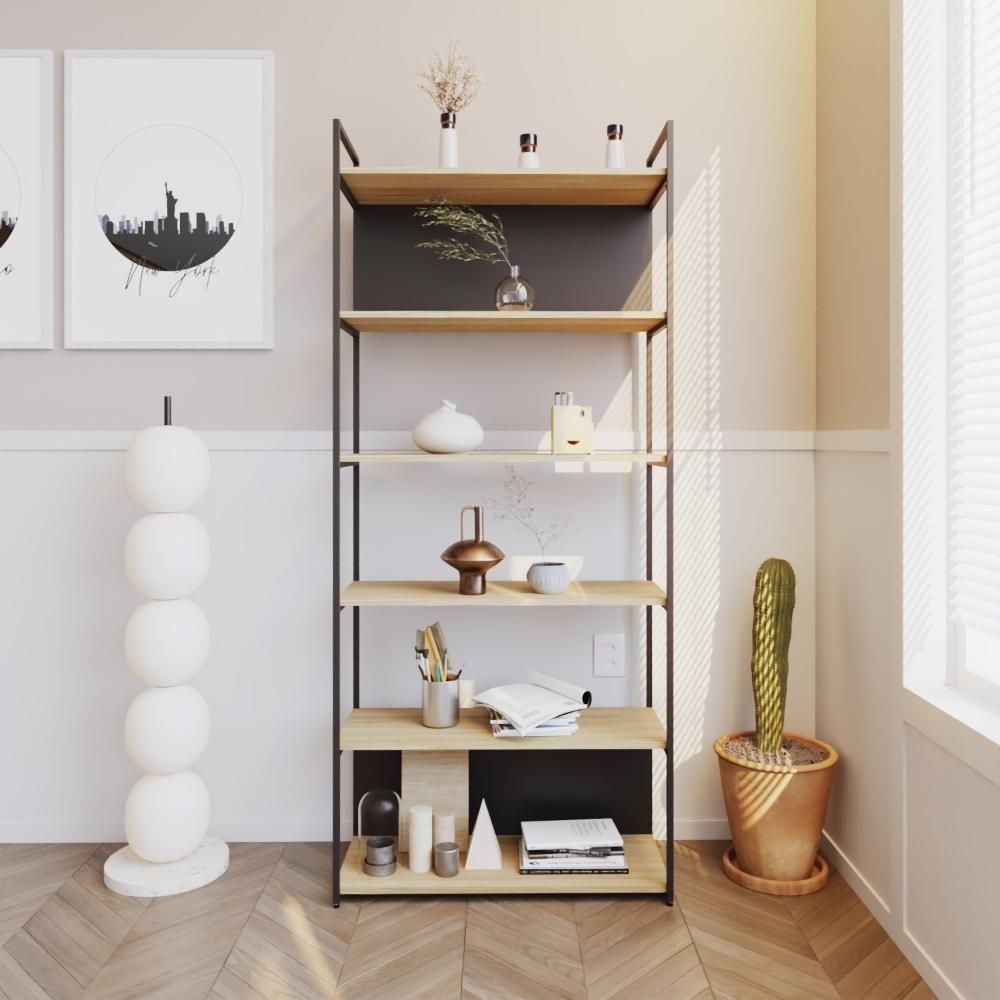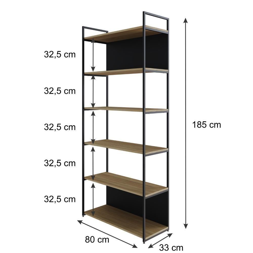 Estante Com 6 Prateleiras 186x80x33cm Comfundo Yon Vermont Oak Preta