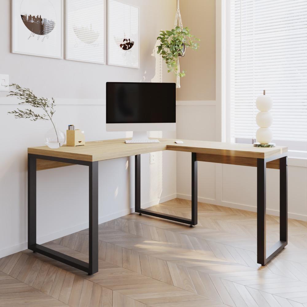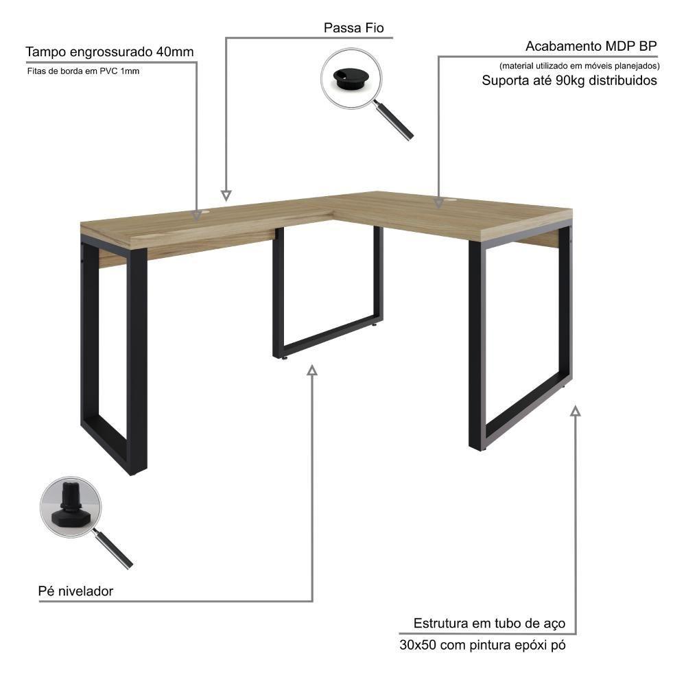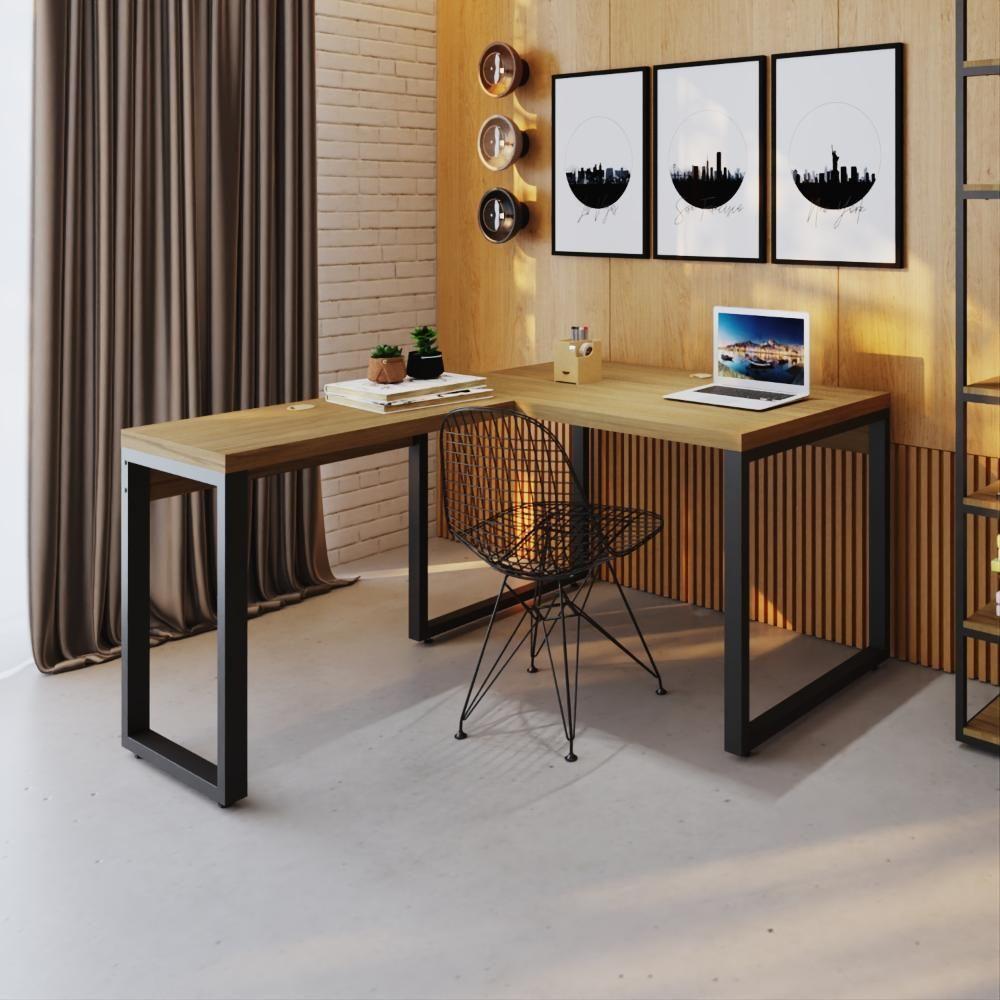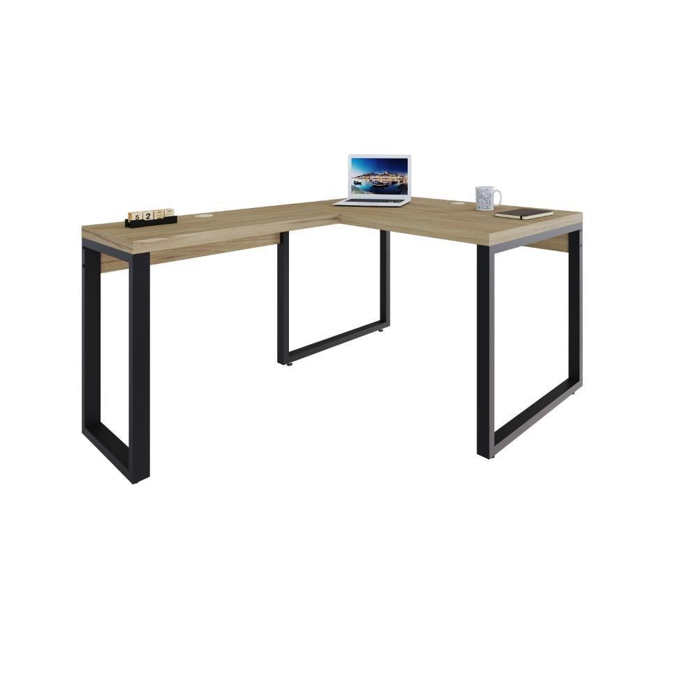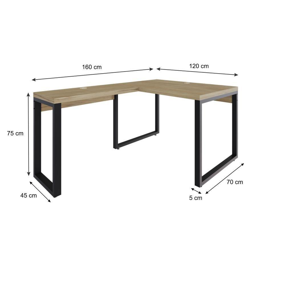 Mesa Em L Operacional 120x160x75cm Yon Vermont Oak-est.preta Vermont Oak-est.preta