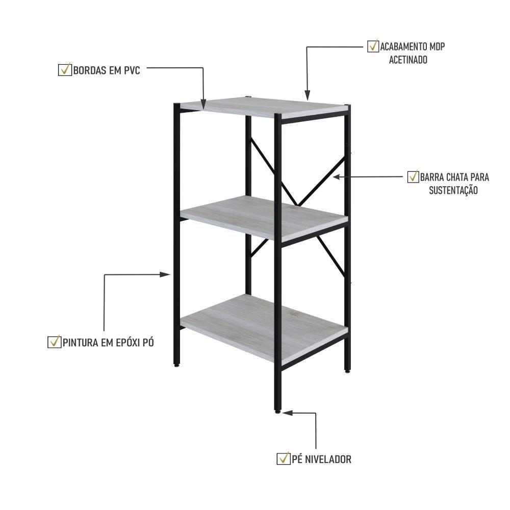 Estante C/03 Prateleiras 84x45x33cm Tub Tueh843 Snow - Est.preta Snow / Est.preta