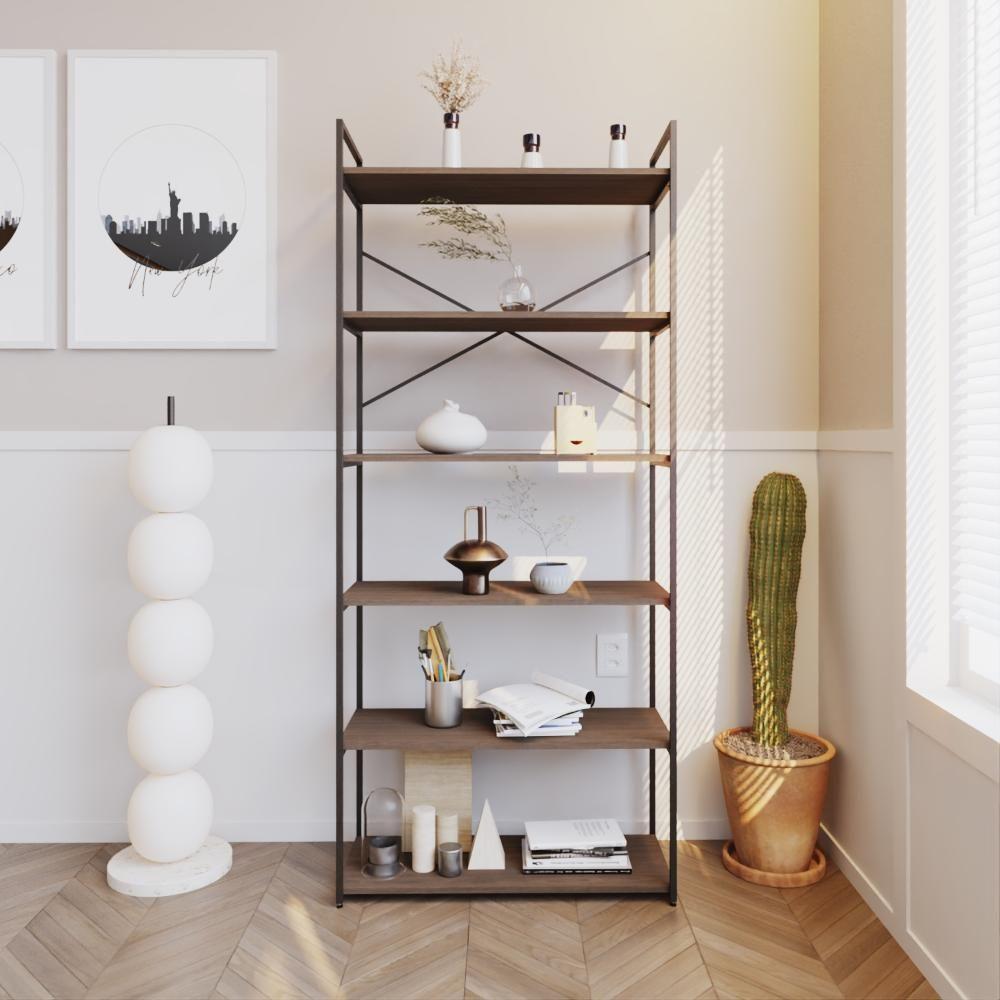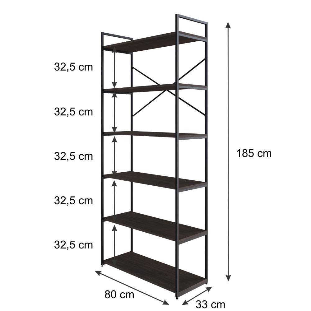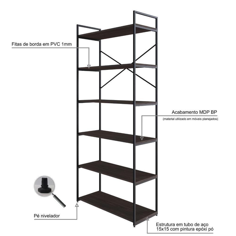 Estante Alta C/06 Prateleiras 185x80x33cm Yon Terracota/est.preta Terracota/est.preta