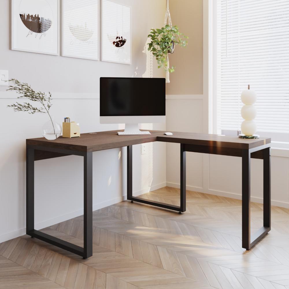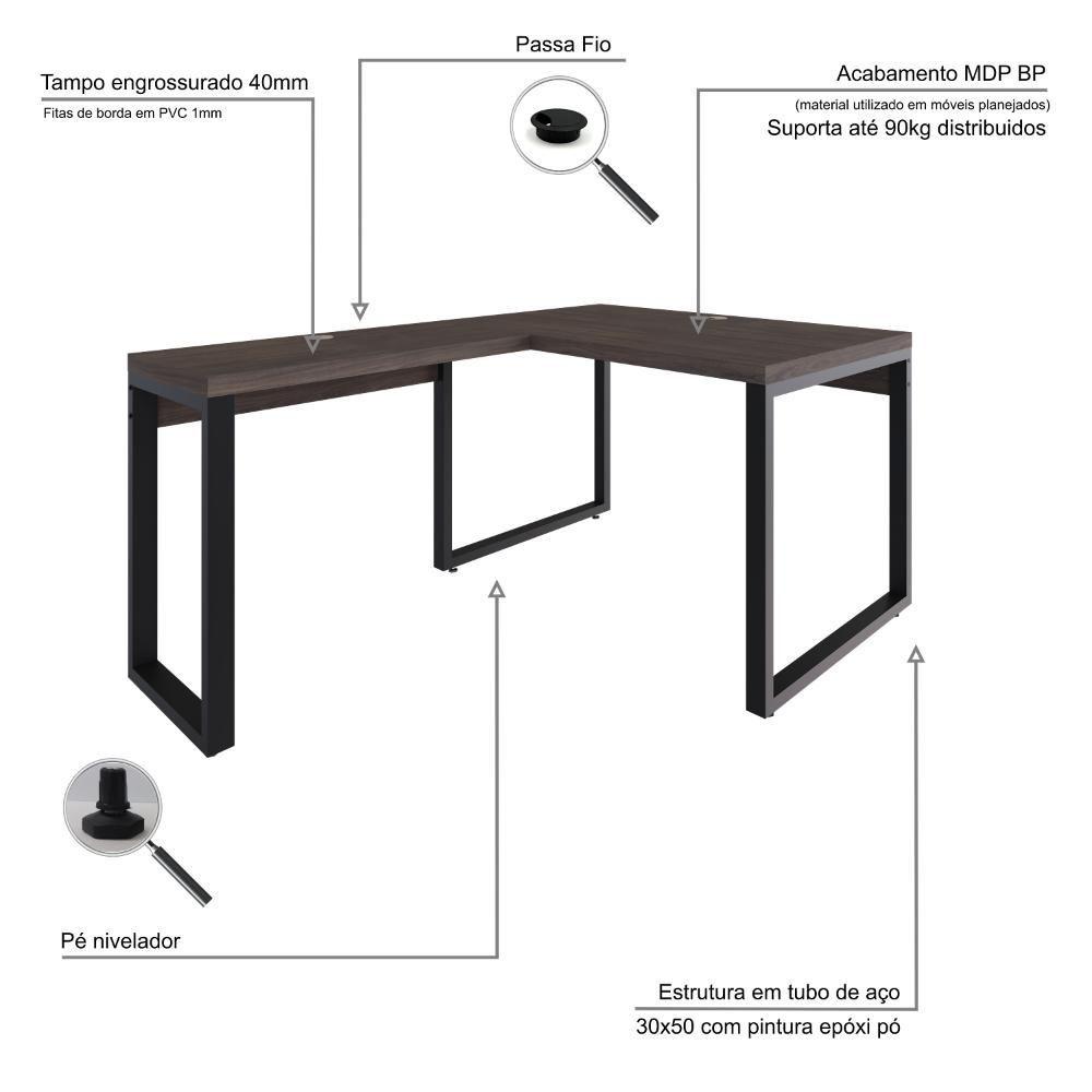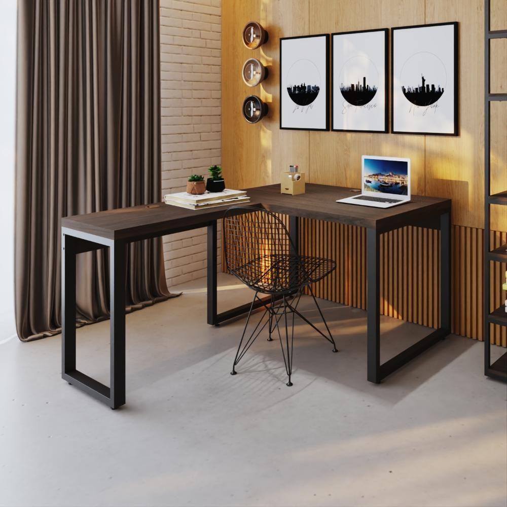 Mesa Em L Operacional 120x160x75cm Yon Terracota-est.preta Terracota-est.preta
