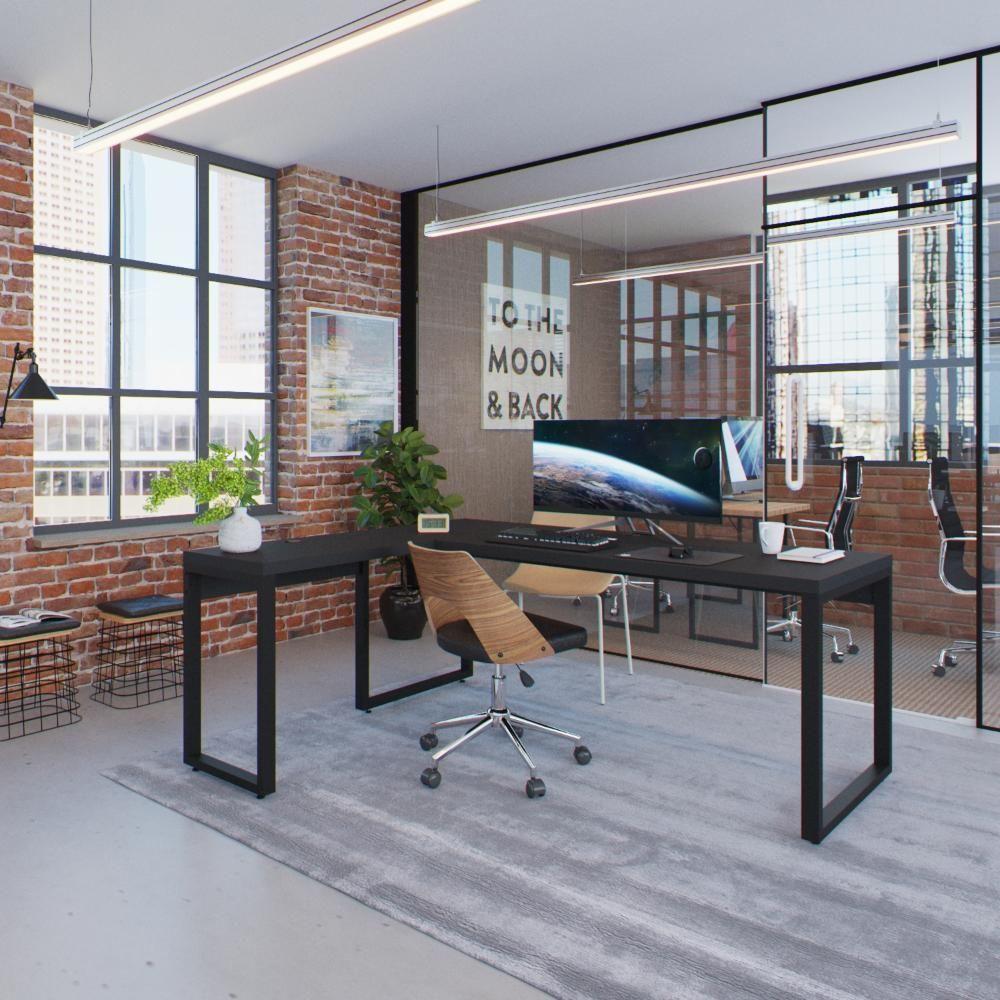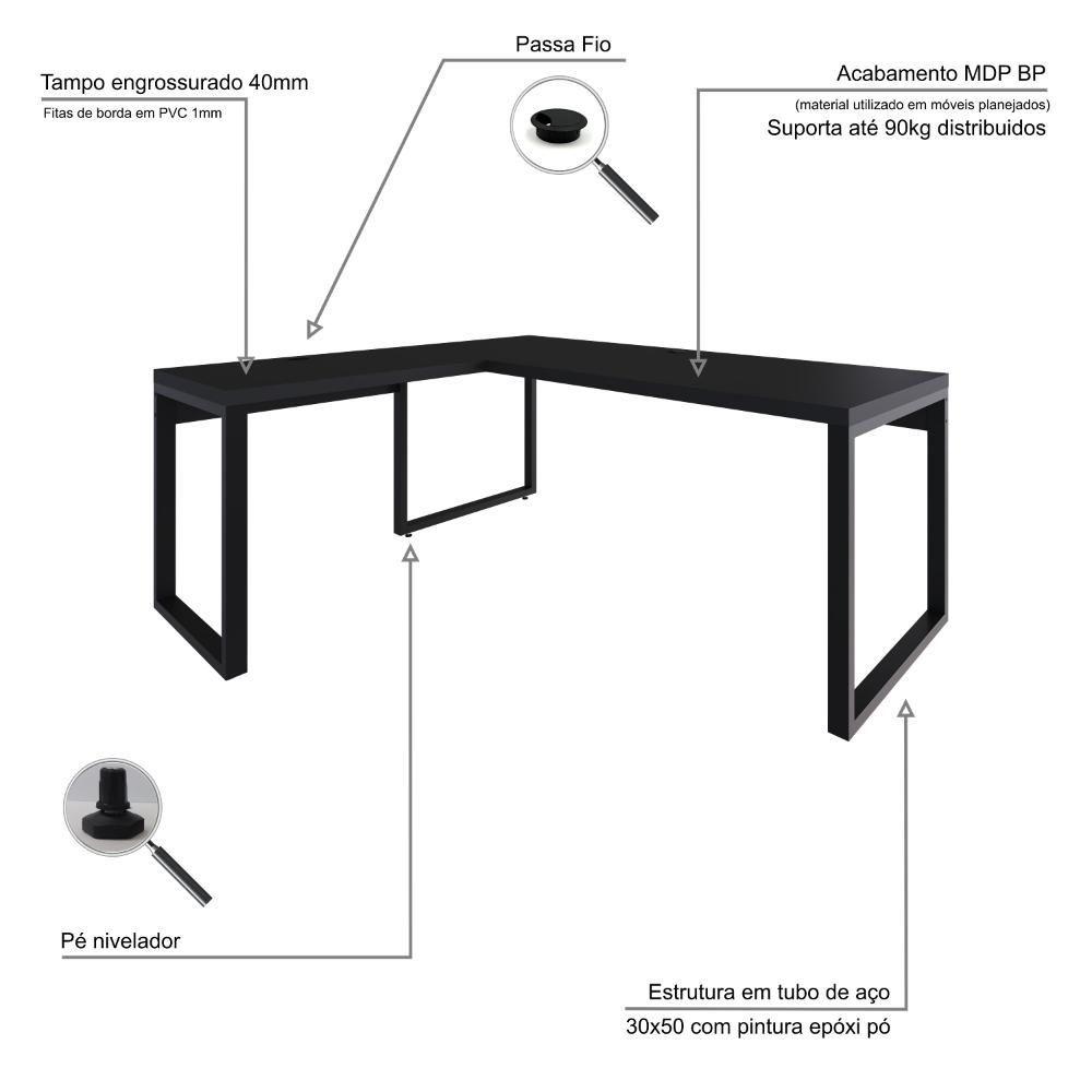 Mesa Em L Presidente 190x160x75cm Yon Preto Tx-est.preta Preto Tx-est.preta