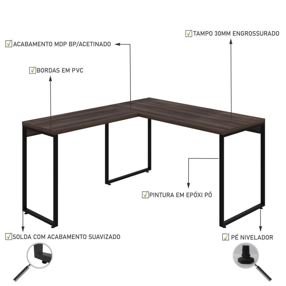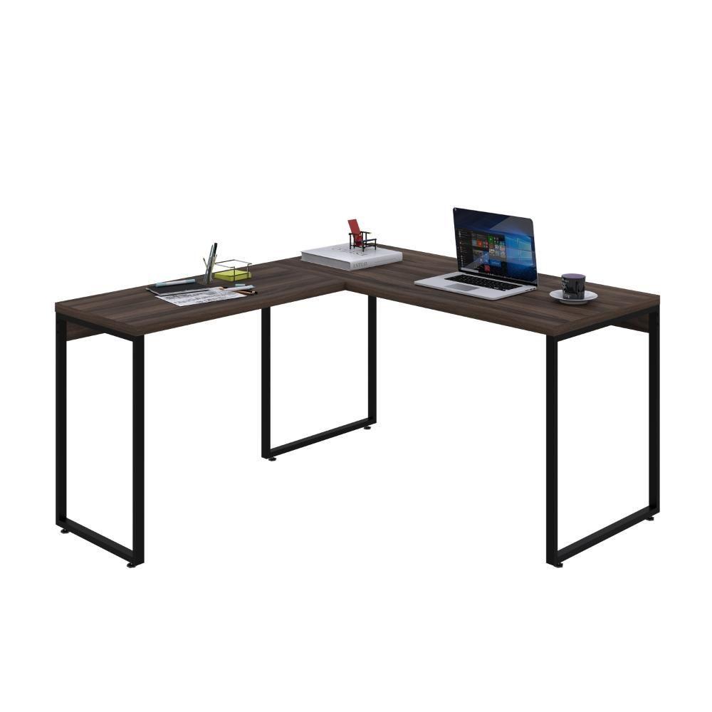 Mesa Em L Kuadra Office 135x150x75cm Nogal - Est.preta Nogal - Est.preta