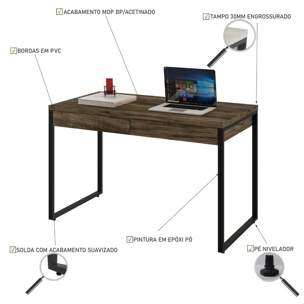 Mesa Kuadra Office 120x60x75cm C-02 Gavetas Carvalho Dark - Est.preta Carvalho Dark - Est.preta