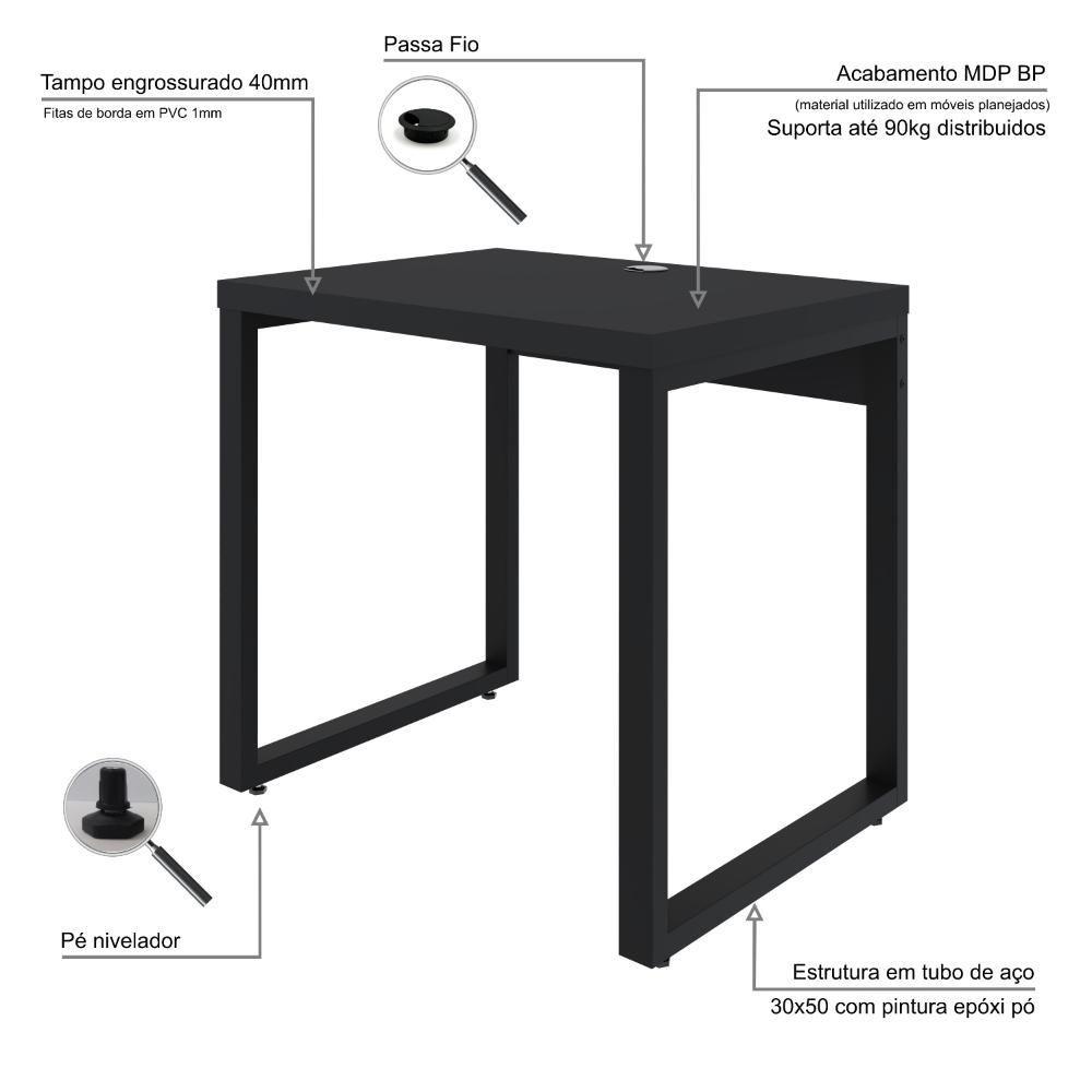 Mesa Operacional 80x60x75cm Yon Preto Tx-est.preta Preto Tx-est.preta