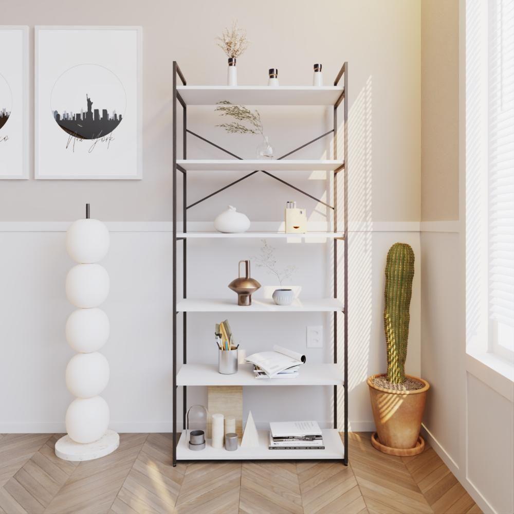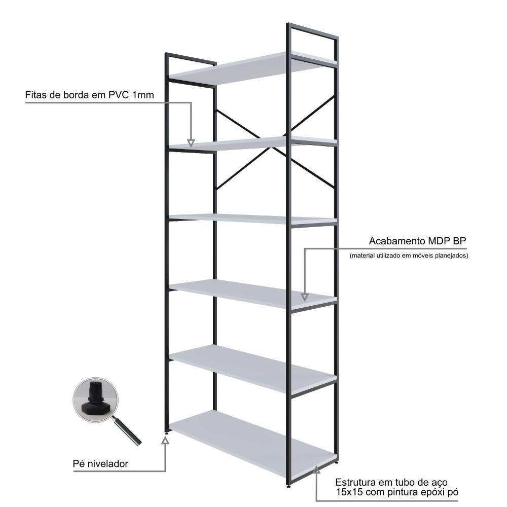 Estante Alta C/06 Prateleiras 185x80x33cm Yon Branco Tx/est.preta Branco Tx/est.preta