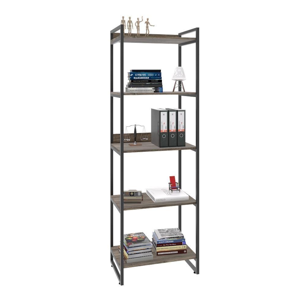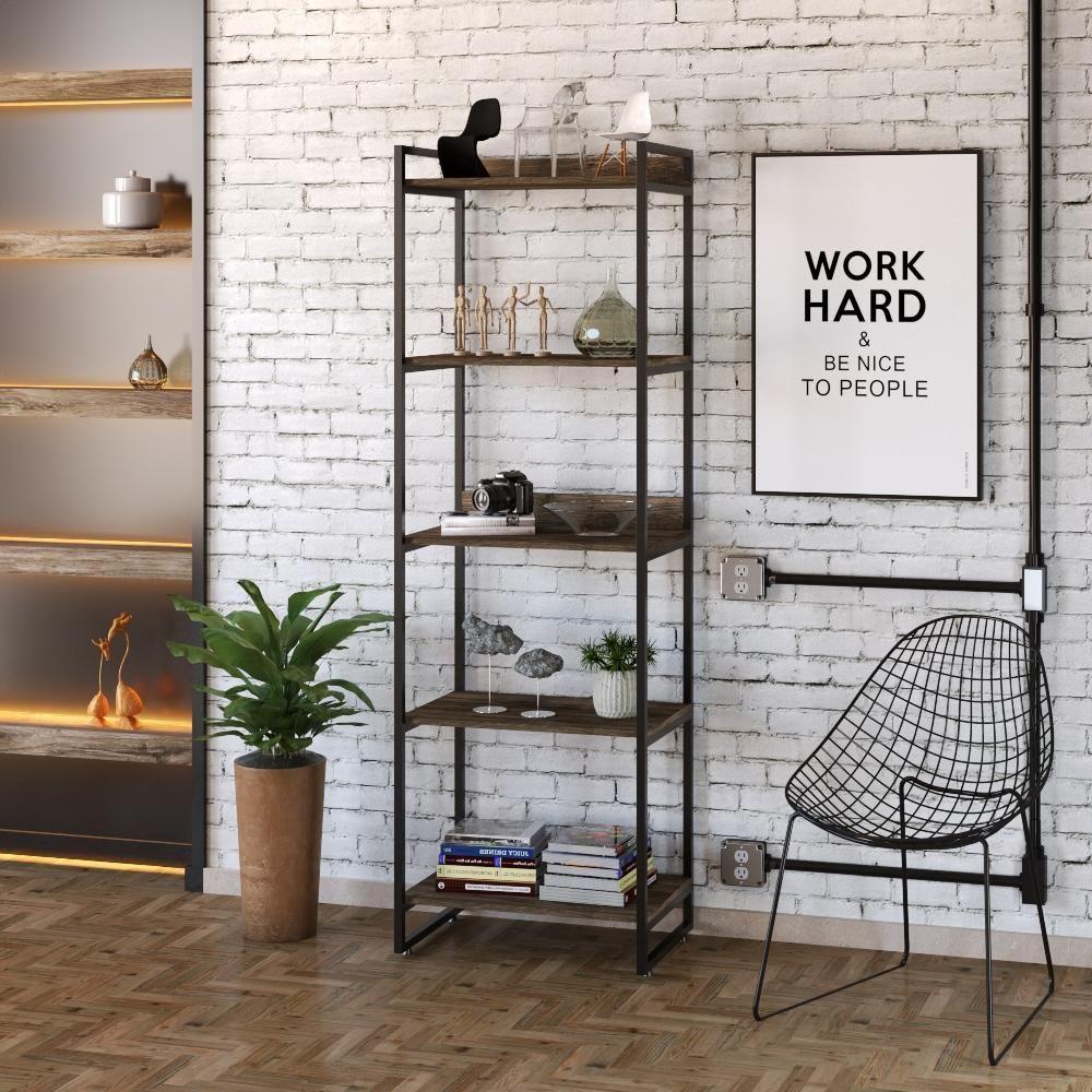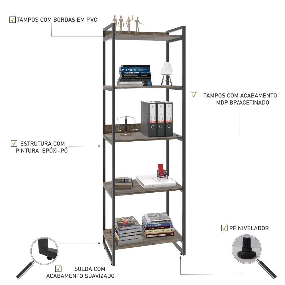 Estante Kuadra 60x40x187cm C/05 Prateleiras Carvalho Dark / Est.preta Carvalho Dark / Est.preta