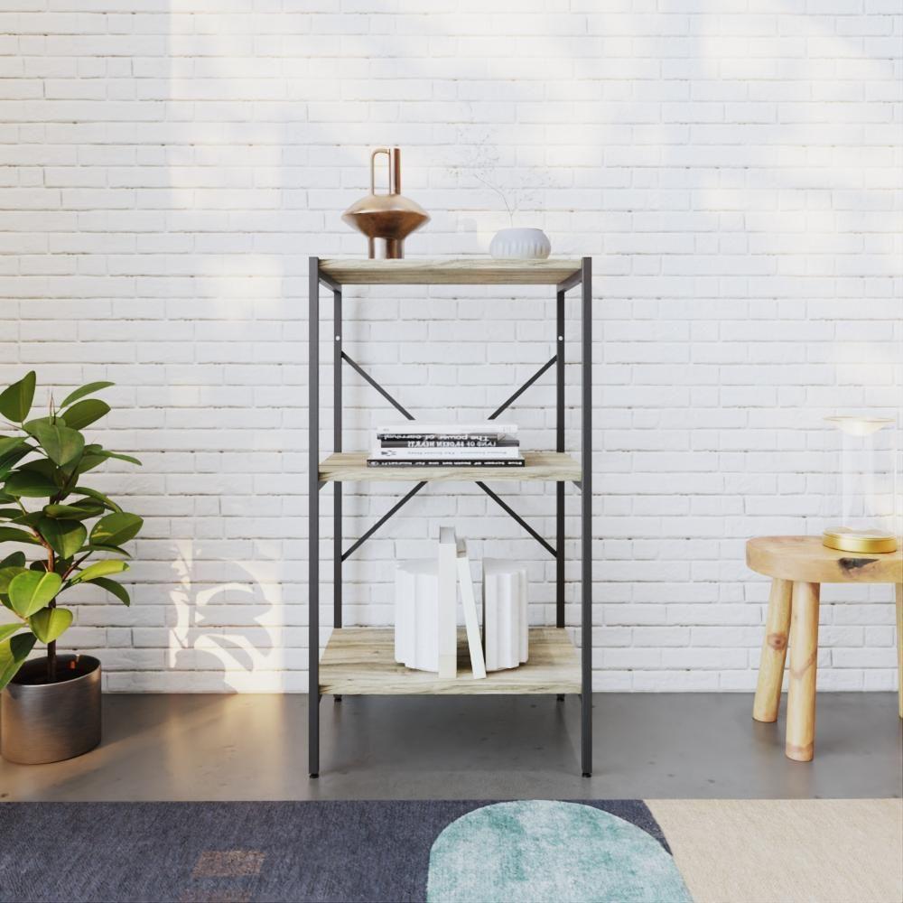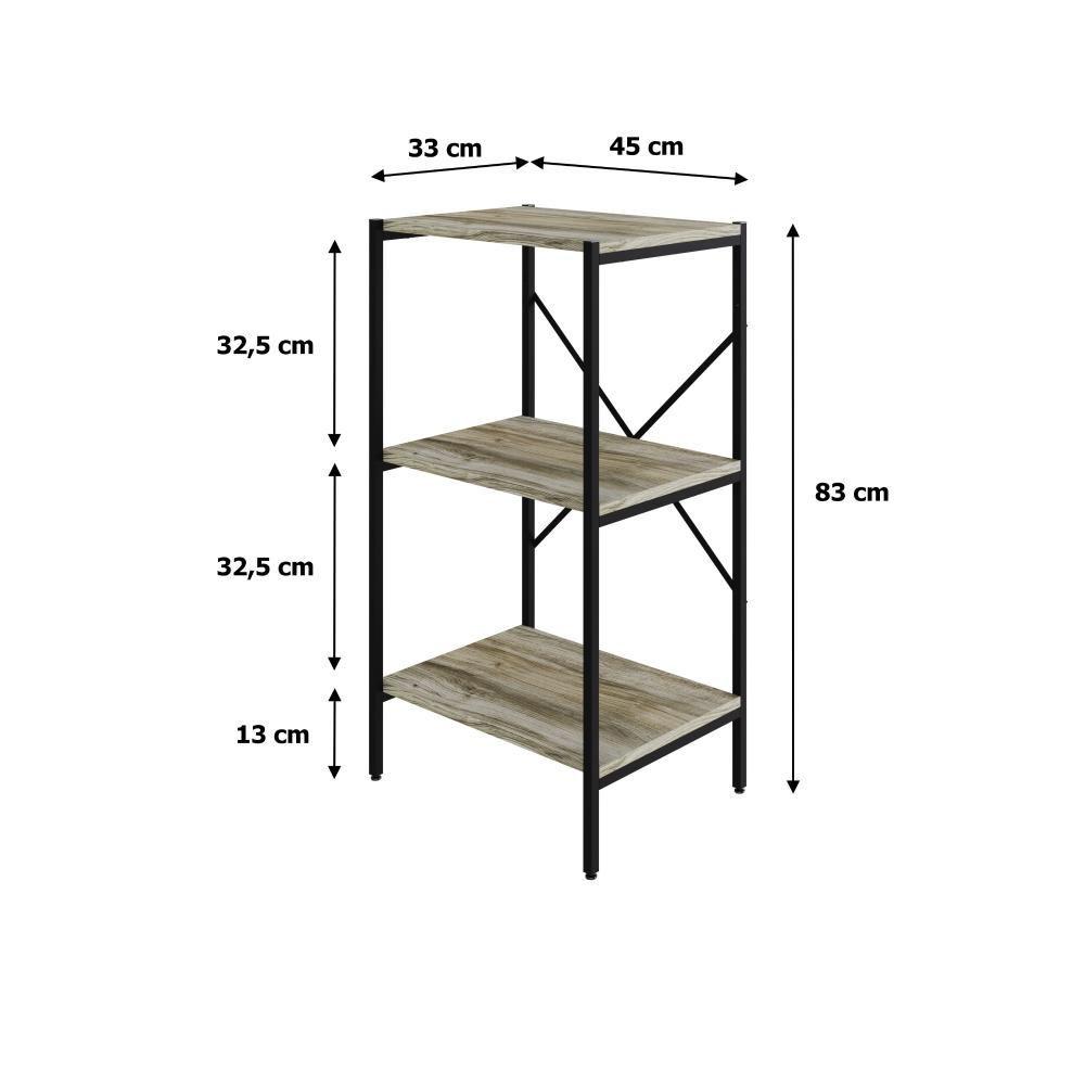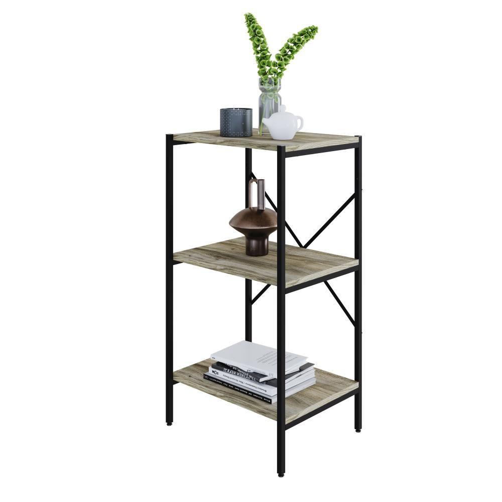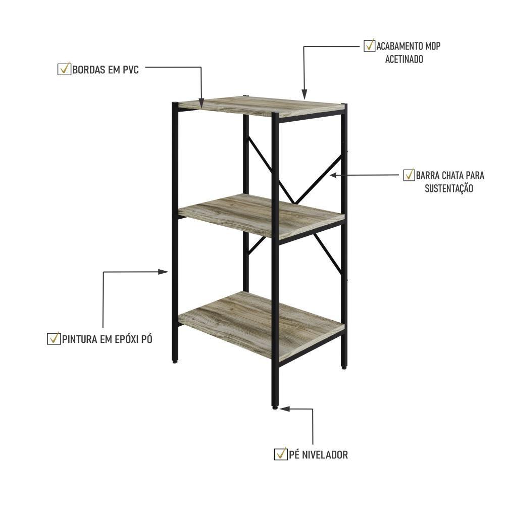Estante C/03 Prateleiras 84x45x33cm Tub Tueh843 Carvalho - Est.preta Carvalho / Est.preta