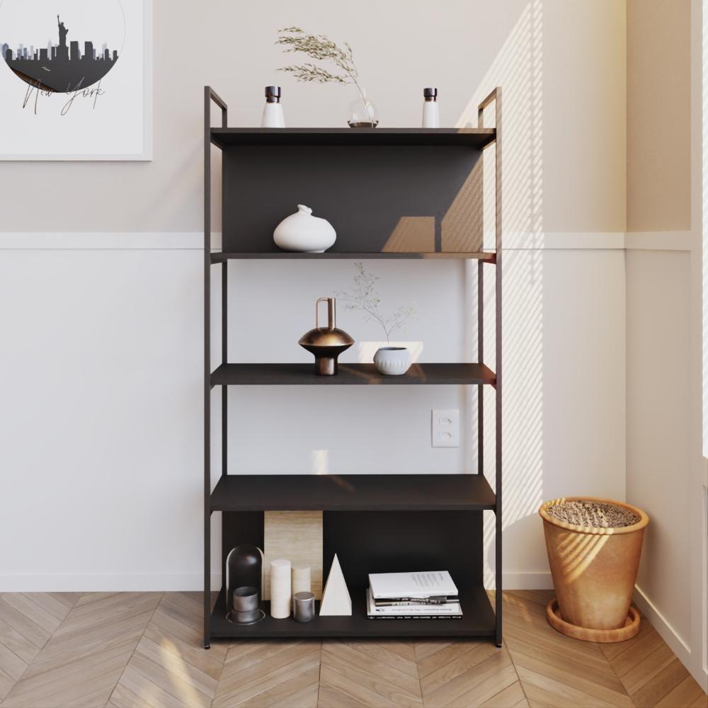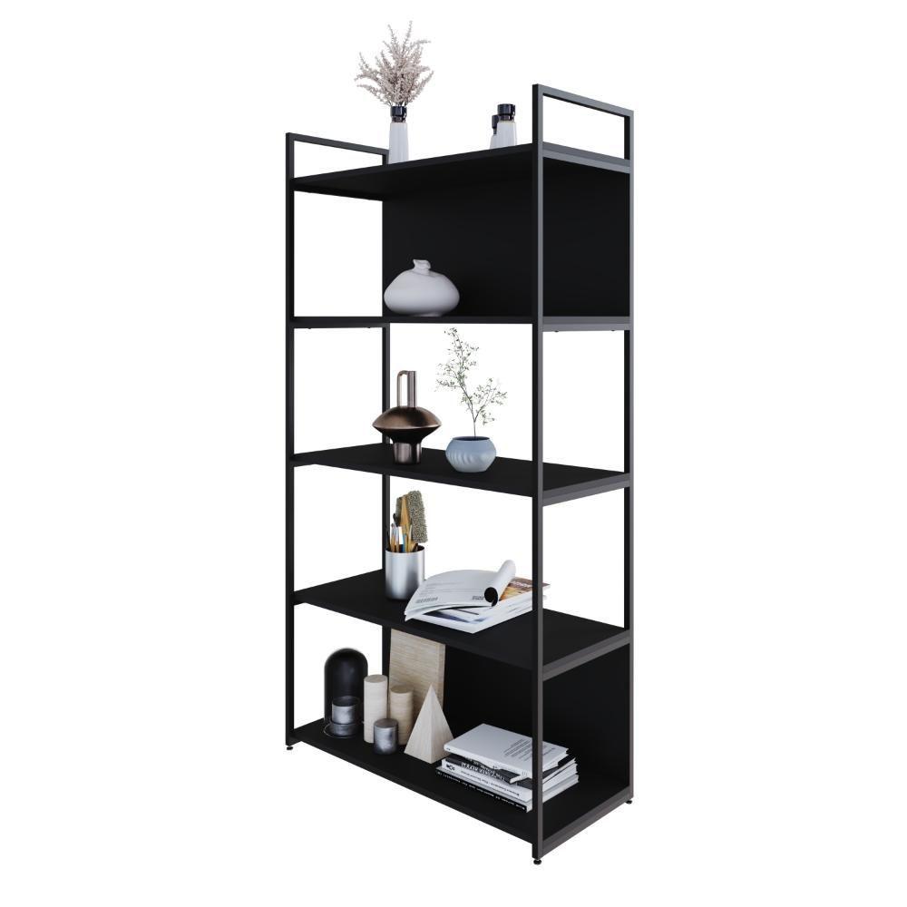 Estante C/05 Prateleiras 152x80x33cm C/fundo Yon Preto Tx/est.preta Preto Tx/est.preta