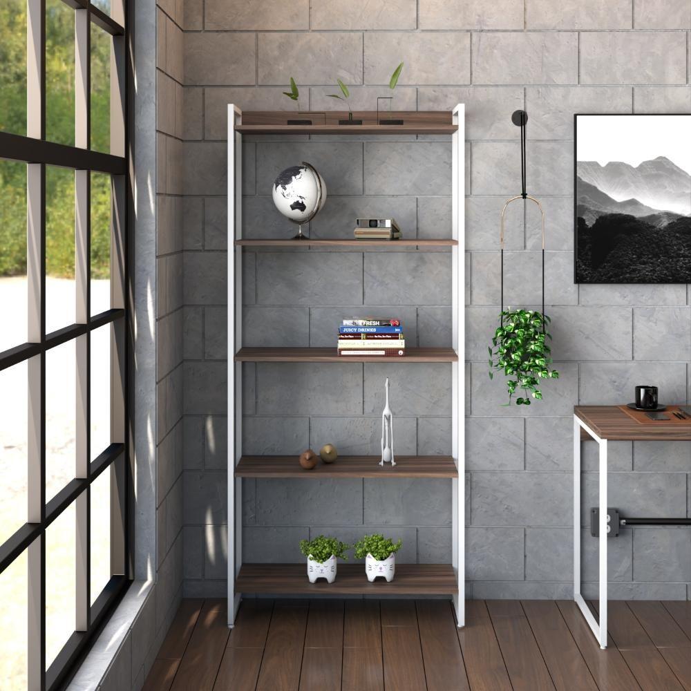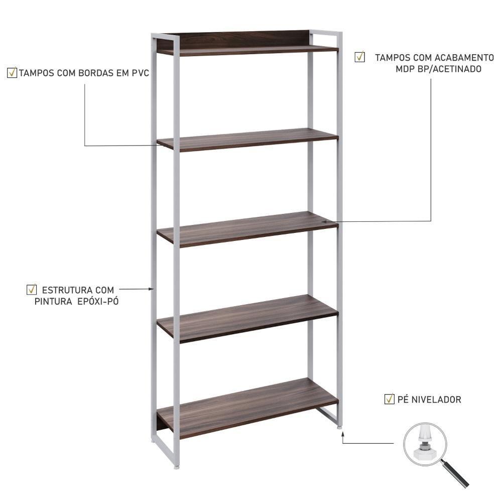 Estante Dynamica 80x30x187cm C/05 Prateleiras Nogal / Est.branca Nogal / Est.branca