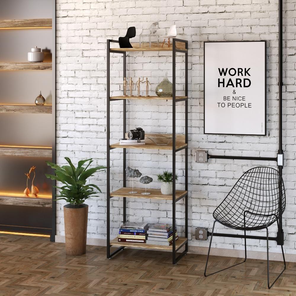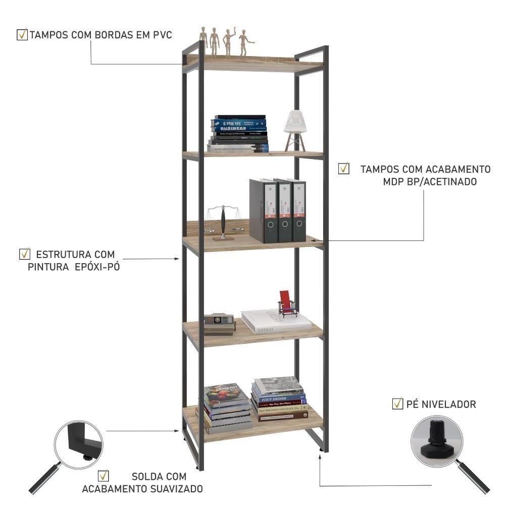 Estante Kuadra 60x40x187cm C/05 Prateleiras Carvalho / Est.preta Carvalho / Est.preta