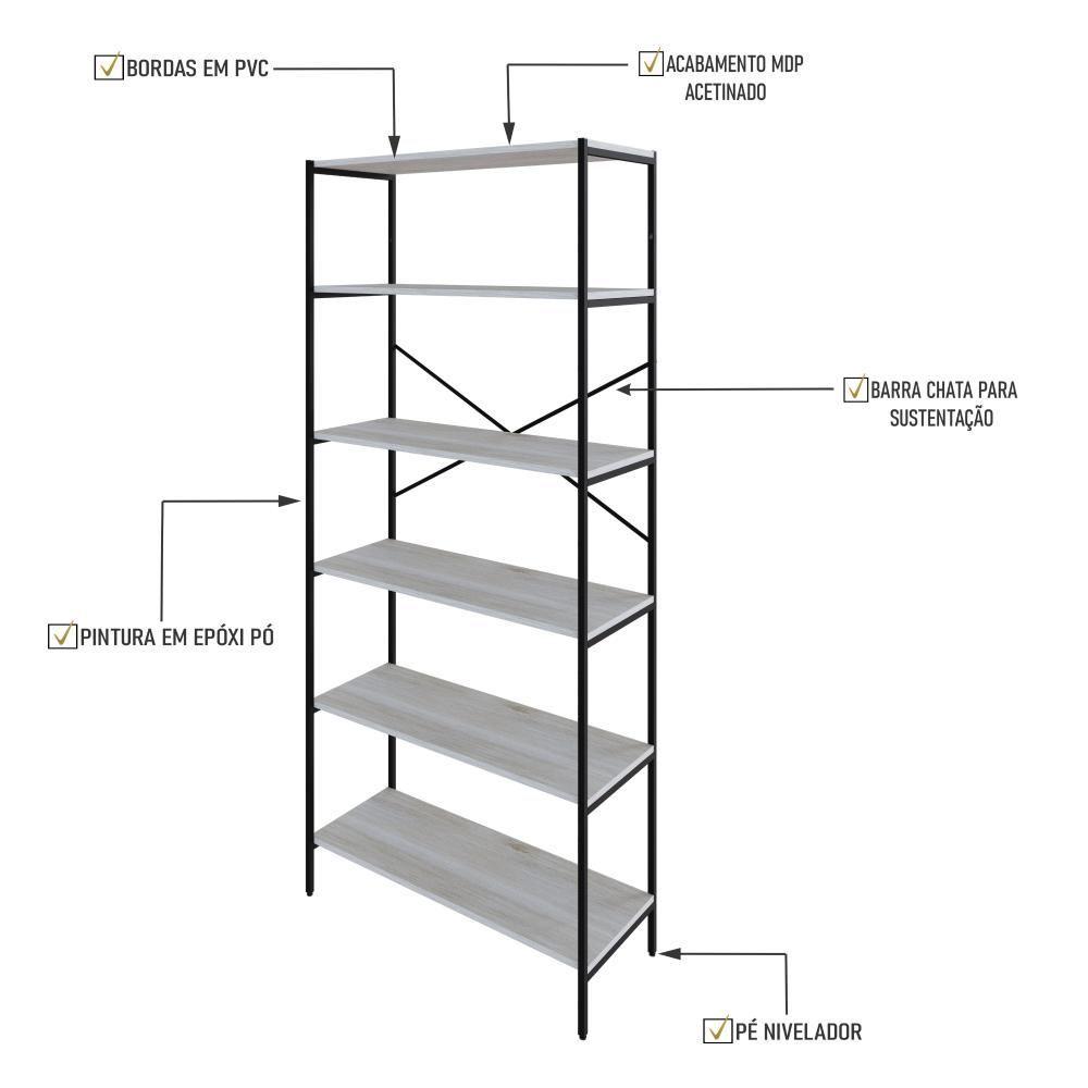 Estante C/06 Prateleiras 186x80x33cm Tub Tueh1886 Snow - Est.preta Snow / Est.preta