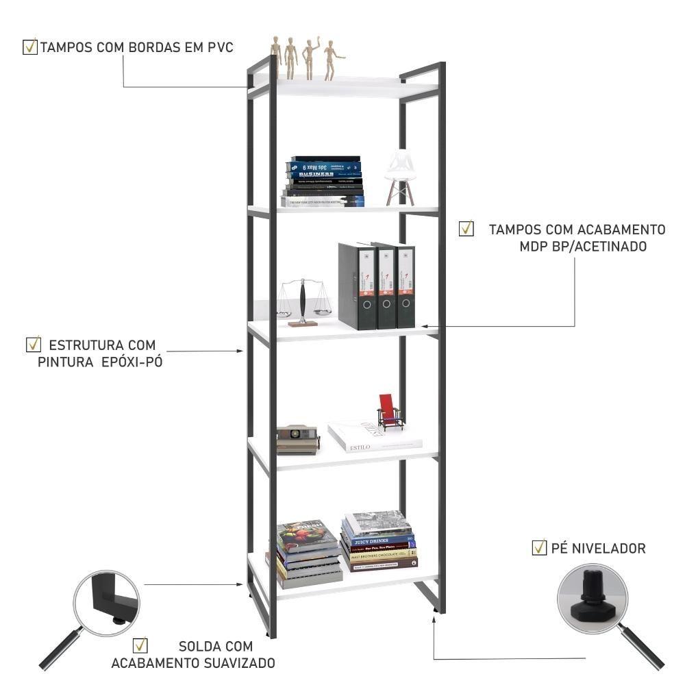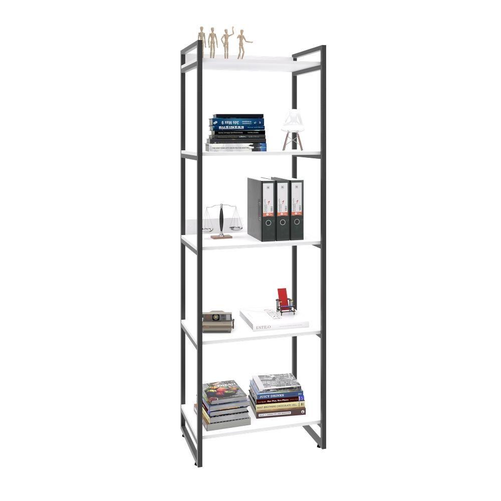 Estante Kuadra 60x40x187cm C/05 Prateleiras Branco Chess / Est.preta Branco Chess / Est.preta