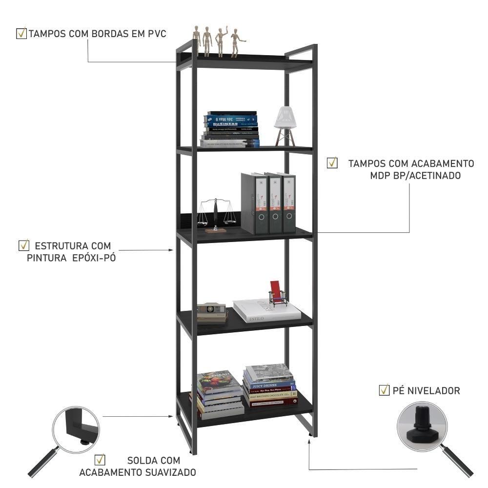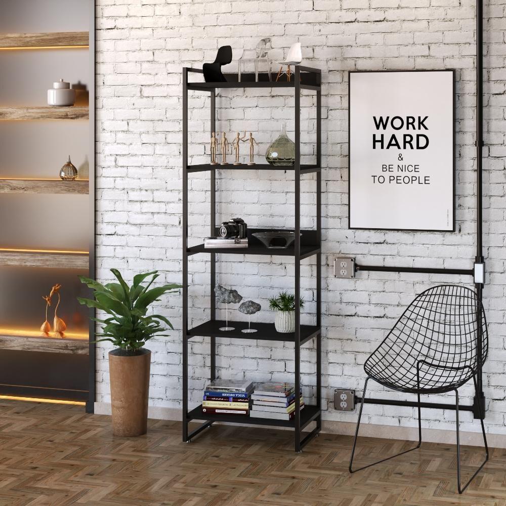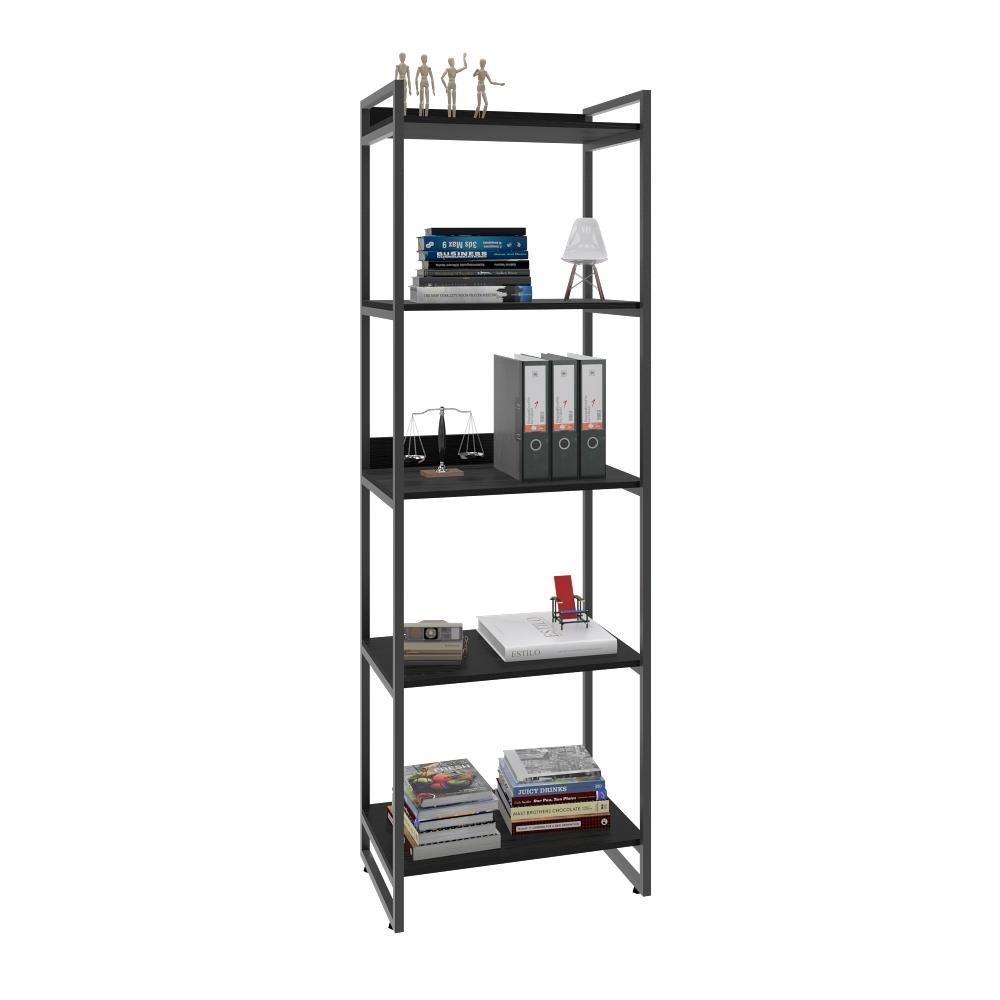 Estante Kuadra 60x40x187cm C/05 Prateleiras Preto ônix / Est.preta Preto ônix / Est.preta
