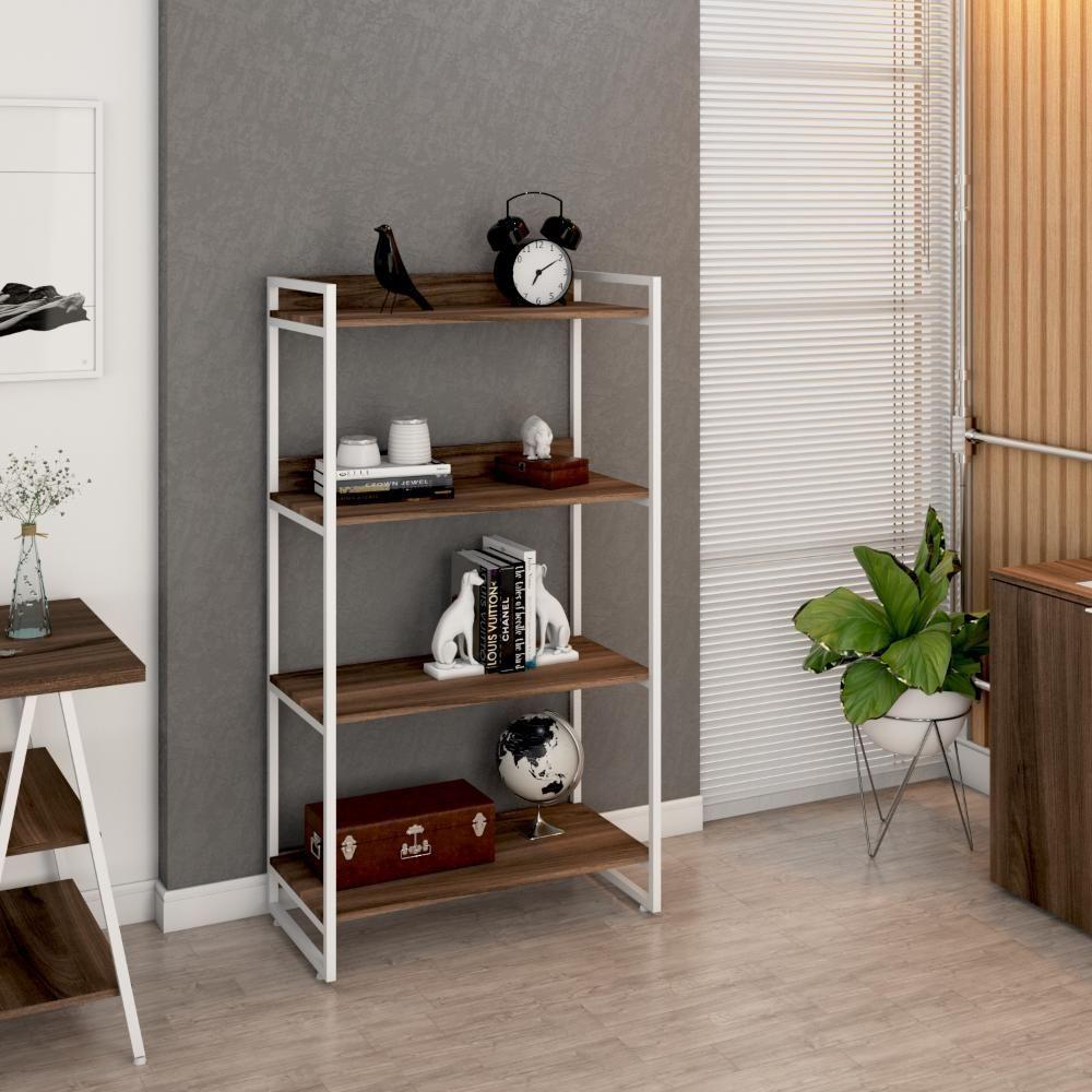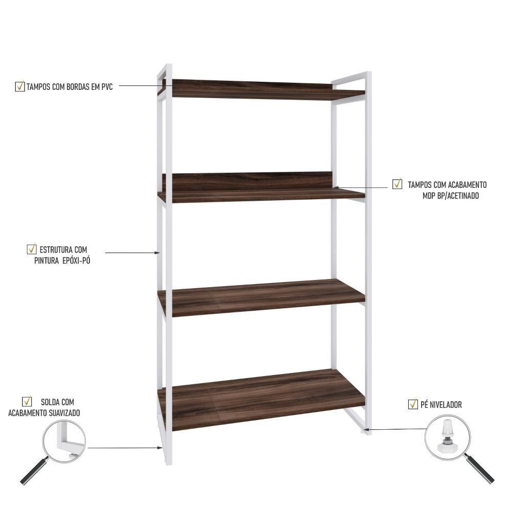 Estante Kuadra 80x40x146cm C/04 Prateleiras Nogal / Est.branca Nogal / Est.branca