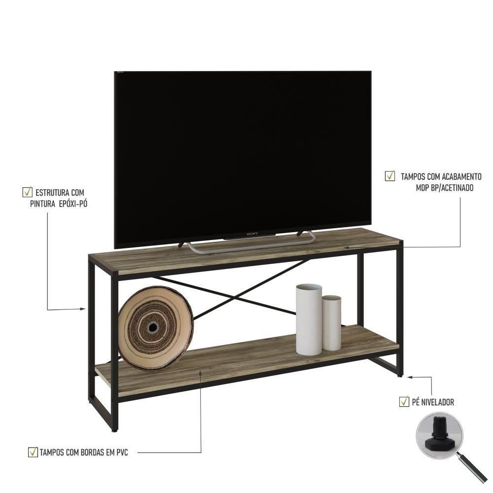 Rack P-tv Dynamica 120x30x56cm C-02 Prateleiras Carvalho - Est.preta Carvalho - Est.preta